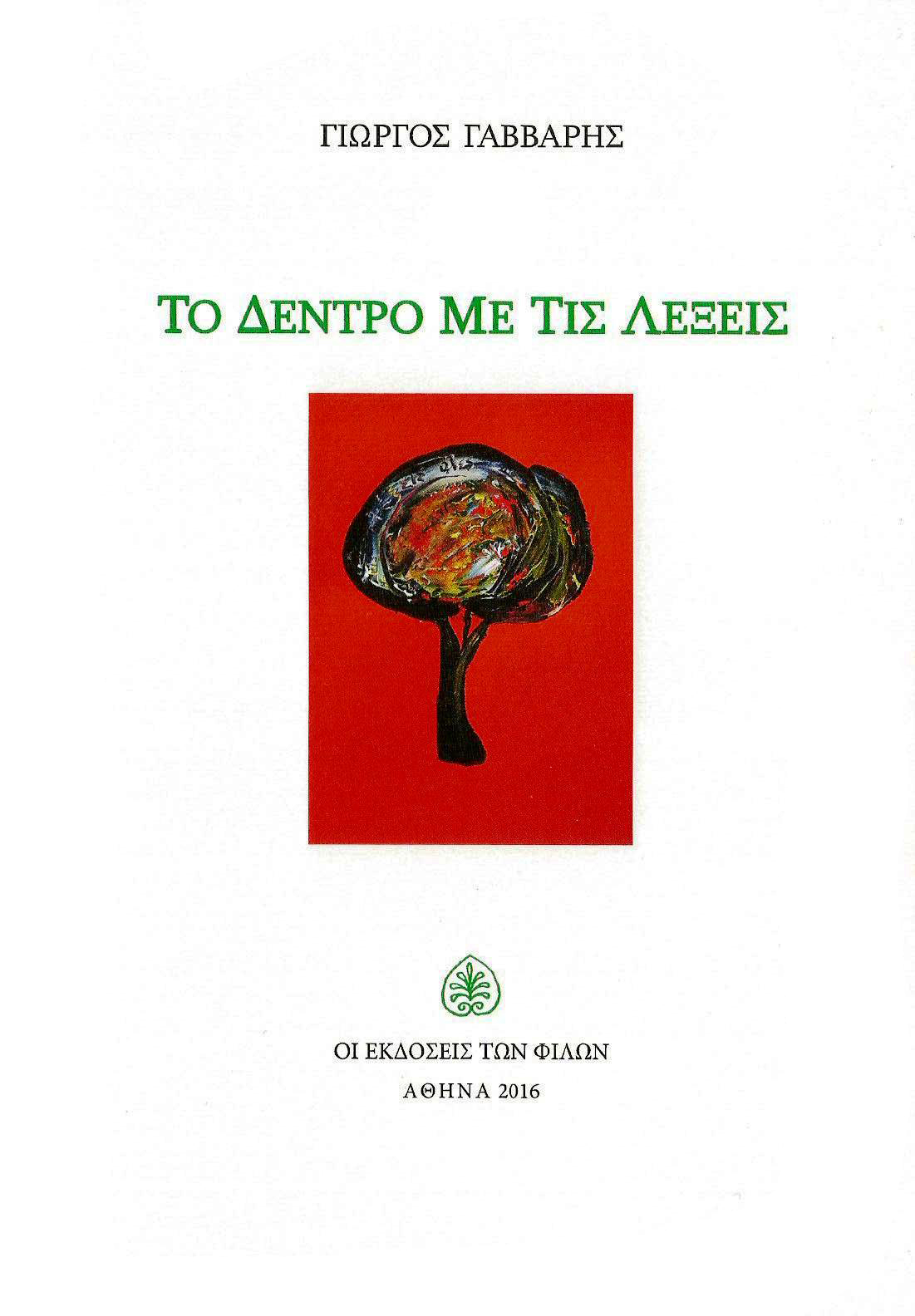 Μικρό το βιβλίο σε μέγεθος, «μεγάλο» σε περιεχόμενο, λιτό και σεμνό, μια όμορφη έκδοση του 2016 από τις «ΕΚΔΟΣΕΙΣ ΤΩΝ ΦΙΛΩΝ», μια ποιητική συλλογή του Γιώργου Γάββαρη με τίτλο: