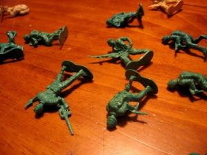 Τα πλαστικά αυτά στρατιωτάκια τα αραδιάζαμε στα πατώματα, στα πεζούλια και τις αυλές των φτωχικών σπιτιών μας, παίζαμε μ’ αυτά ηρωικές ιστορίες και τα ανταλλάσσαμε μεταξύ μας. Πολλές φορές, μάλιστα, κάναμε διαγωνισμούς μεταξύ μας, για το ποιος έχει τα περισσότερα και σπανιότερα στρατιωτάκια. Είναι αδύνατο για ένα σημερινό παιδί της αφθονίας, να καταλάβει πόση χαρά μας έδιναν αυτά τα απλά, φθηνά στρατιωτάκια και πόσα αξέχαστα πετάγματα κάναμε με τη φαντασία μας σκηνοθετώντας τις περιπετειώδεις ιστορίες, οι οποίες πολλές φορές ήταν καλύτερες και από σενάρια του τότε κινηματογράφου. Κάποιοι "αθεράπευτοι" που αρνούνται (και καλά κάνουν) να μεγαλώσουν τα έχουν ακόμα φυλαγμένα αυτά τα πλαστικά μικρά στρατιωτάκια στα συρτάρια τους, αδιάρρηκτο κρίκο της αλυσίδας που τους ενώνει με το «χθες» της ζωής τους!!!