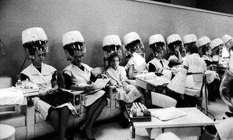 Φωτογραφίες: Στο κομμωτήριο της γειτονιάς οι κυρίες ψηνόντουσαν με τις ώρες κάτω απ τις κάσκες σεσουάρ με τα μαλλιά πασαλειμένα πλίξ τυλιγμένα σε ρόλλει κι όλα μαζί σκεπασμένα με δίχτυ και τα αυτιά σκεπασμένα με κοκκάλινα καπάκια.