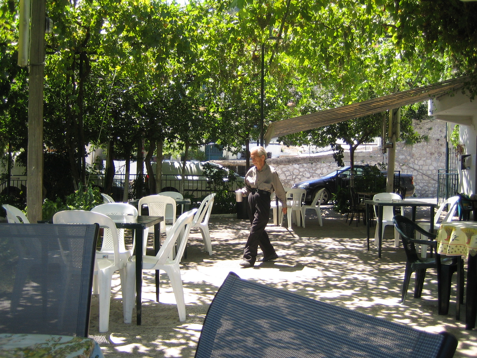 Η θέση είναι ένα φυσικό μπαλκονάκι με θέα τον κάμπο της Σπάρτης. Εκεί το καλοκαίρι βγαίνουν τραπεζάκια κάτω από την κληματαριά και τα βαθύσκια δέντρα της αυλής, το αεράκι της Λαγκάδαςκαι ο ήχος των νερών που τρέχουν σε μυστικά μονοπάτια γίνονται «δαιτυμόνες φαιδροί της τραπέζης», η ματιά απλώνεται να μαζέψει τη γύρη της φύσης και να ξεκουραστεί πάνω στη μαγεία της κοιλάδας, ο νους ξεκουράζεται , η ψυχή αγάλλεται, η φύση γίνεται κομμάτι της καρδιάς σου και το κρασί με τους νόστιμους , σπιτικούς, παραδοσιακούς μεζέδες που ετοιμάζουν και σερβίρουν ο Ηλίας και ο Σταύρος , οι δυο από τους γιους του κυρ – Δημήτρη, γίνεται πραγματική απόλαυση. Κι όταν έρχεται ο χειμώνας, γύρω από τη σόμπα, συναδερφώνονται οι παρέεςκαι μολογιούνται οι παλιές ιστορίες των ανθρώπων και του χωριού, σ’ αυτό το μαγαζί που φέρνει άρωμα από αλλοτινούς καιρούς, από εποχές ζεστασιάς, ανθρωπιάς, αθωότητας και καλής παρέας.