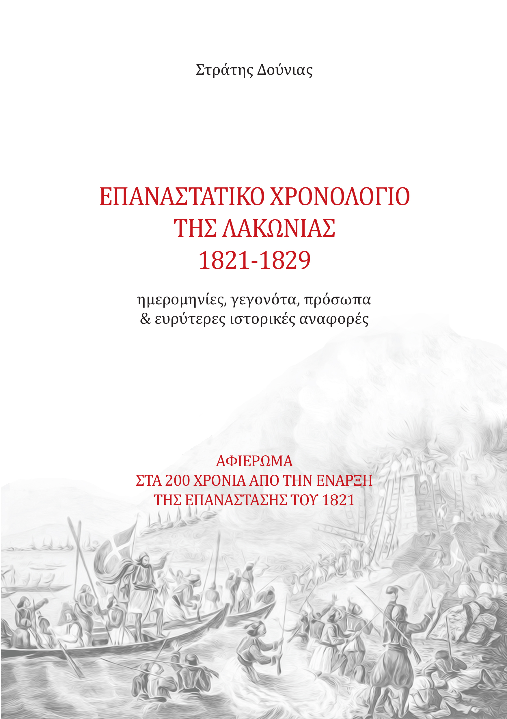 Τώρα ο αγαπητός Στράτης, μάς επεφύλαξε άλλη μία έκπληξη, που ελπίζω πως δεν θα είναι η τελευταία. Πρόκειται για το βιβλίο Ιστορίας «Επαναστατικό Χρονολόγιο της Λακωνίας 1821-1829 – ημερομηνίες, γεγονότα, πρόσωπα κι ευρύτερες ιστορικές αναφορές», το οποίο είναι ένα αφιέρωμα στα 200 χρόνια από την έναρξη της Επανάστασης του 1821 και τη φροντίδα του είχαν οι εκδόσεις «ΛΑΚΩΝΙΚΟΣ ΤΥΠΟΣ» της Χριστίνας - Άννας Α. Χιώτη, το Δεκέμβριο του 2022.