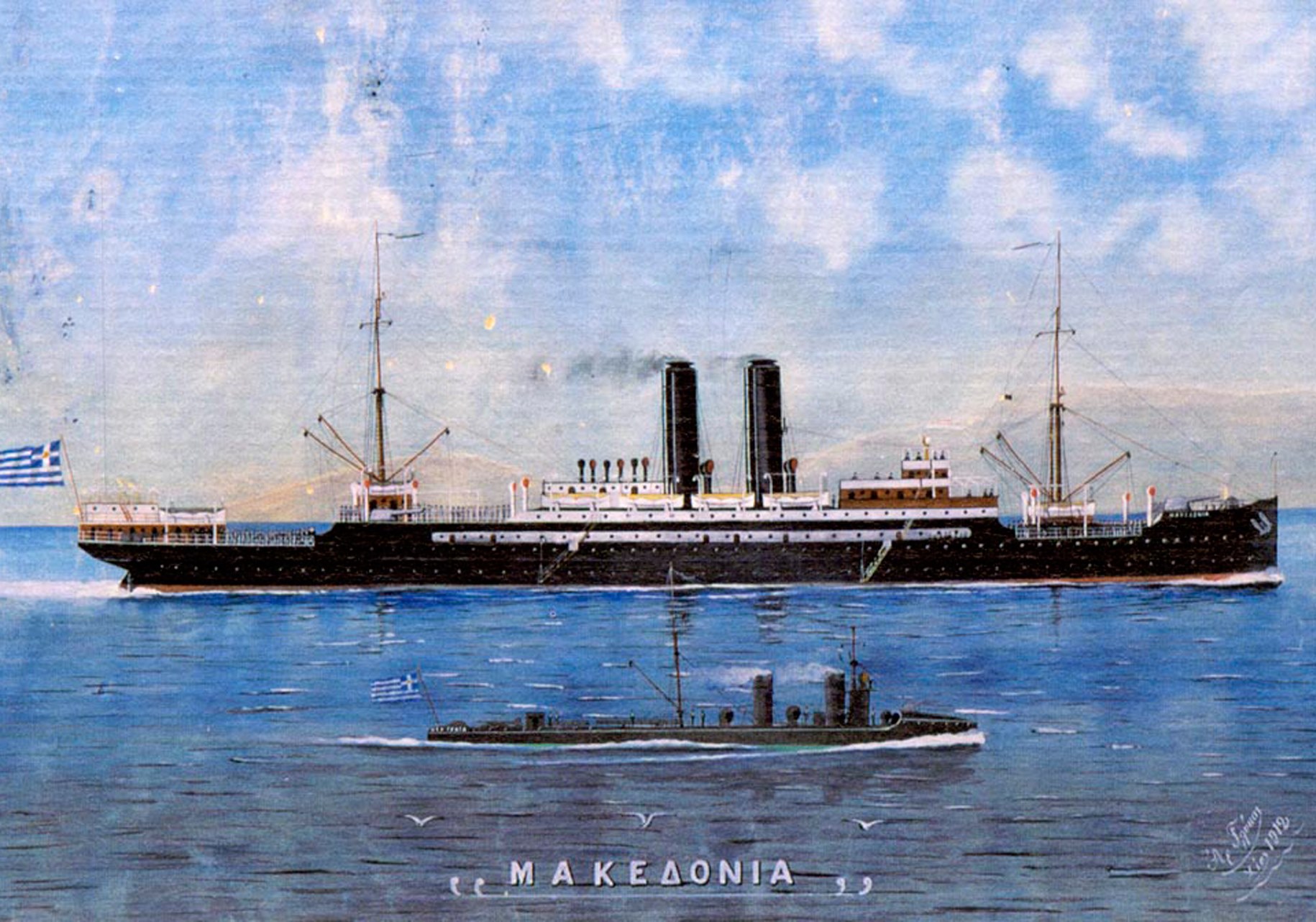 Η χωρητικότητά του ήταν 6.333 τόνοι. Το πρώτο του ταξίδι στη γραμμή Πειραιάς-Πάτρα-Νέα Υόρκη το έκανε τον Απρίλιο του 1912. Ύστερα από μερικά ταξίδια επιτάχθηκε από την ελληνική κυβέρνηση για τις ανάγκες των βαλκανικών πολέμων. Μετατράπηκε σε εξοπλισμένο εύδρομο με κυβερνήτη τον Πλωτάρχη Α. Τσουκαλά. Στις 2 Ιανουαρίου 1913 το «Μακεδονία» βρισκόταν στο λιμάνι της Σύρου, όπου δέχθηκε επίθεση από το τούρκικο καταδρομικό «Hamidie».