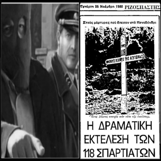 Στα πλαίσια αυτά, αλλά και για να μένει αναμμένη η φλόγα της ιστορικής μνήμης, καταθέτω ένα αφιέρωμα για τους 118 Εθνομάρτυρες του Μονοδενδριού, που δημοσιεύθηκε στην εφημερίδα ΡΙΖΟΣΠΑΣΤΗΣ, στις 26 Νοεμβρίου 1980: