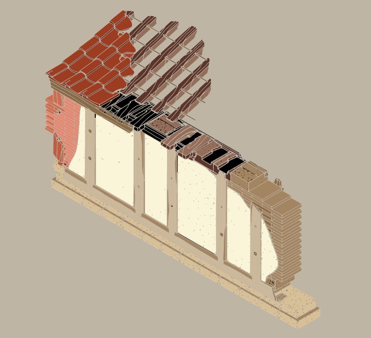 Εικ.11 Πρόταση του καθηγητή Robin Rhodes για την αντισεισμική κατασκευή της τοιχοποιίας του "Πρωτοναού" του Απόλλωνος της Αρχαίας Κορίνθου. Πηγή: Αρχιτέκτων R. Rhodes. Επεξεργασία: Απόστολος Παπαφωτίου.