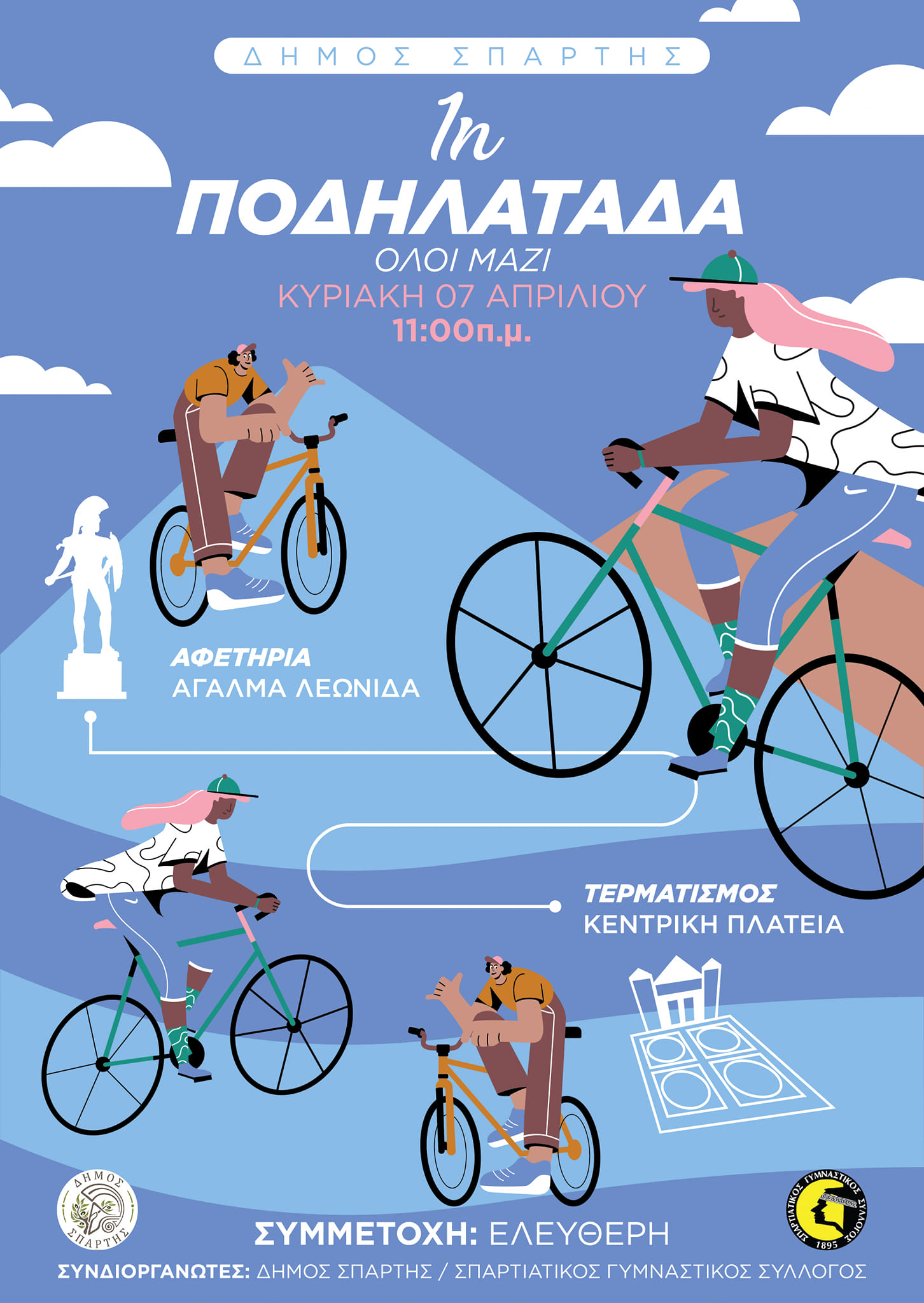 Η πρώτη Ποδηλατάδα με σύνθημα «Όλοι Μαζί» του Δήμου Σπάρτης είναι γεγονός. Μικροί και μεγάλοι, την Κυριακή 7 Απριλίου και ώρα 11:00 πμ, θα κατακλύσουν την πόλη της Σπάρτης με τα ποδήλατά τους, διασχίζοντας τα κεντρικότερα σημεία της.