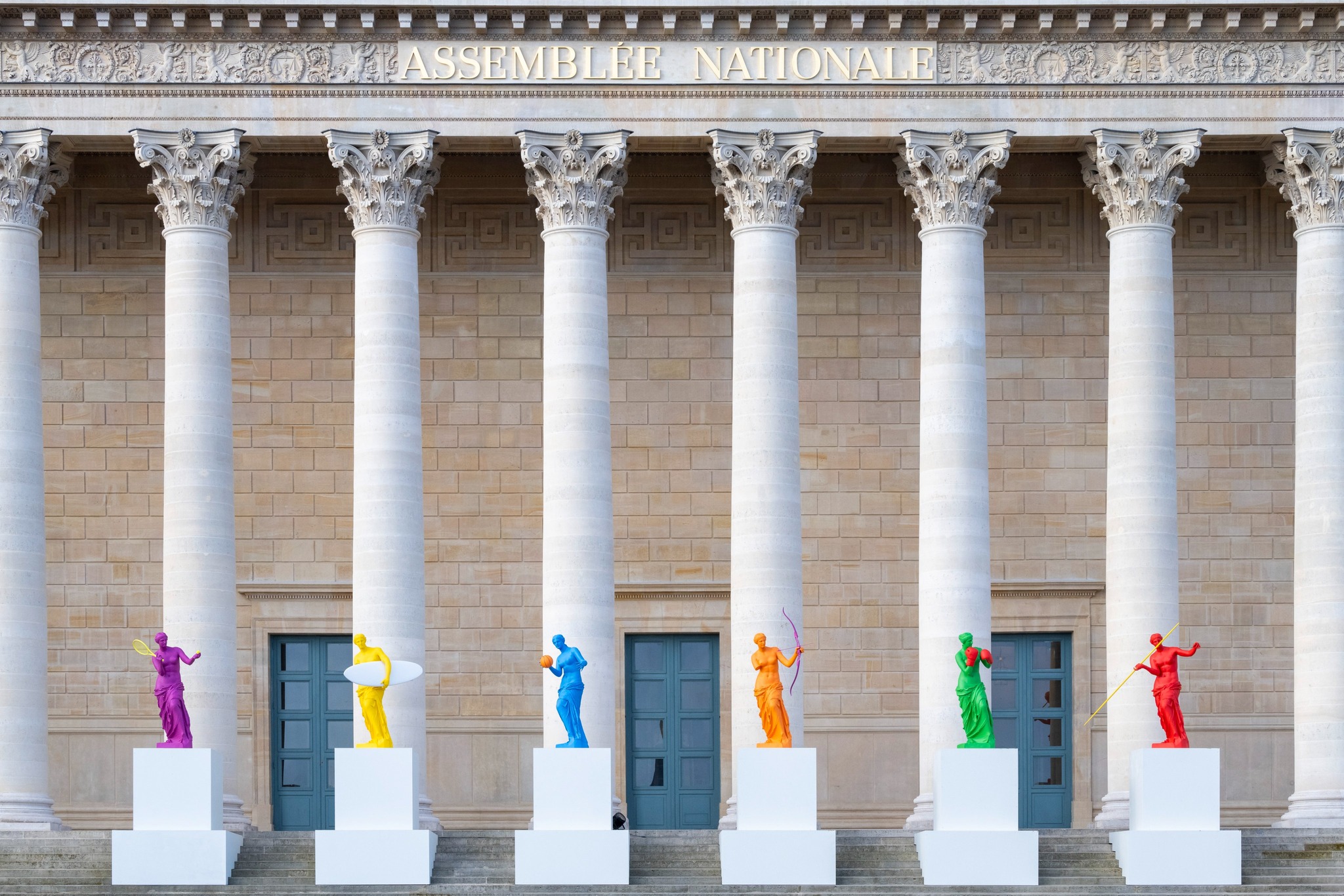 Οι πολύχρωμες Αφροδίτες είναι έργα του καλλιτέχνη Λοράν Περμπός (Laurent Perbos) και επελέγησαν για να αναπαραστήσουν τον Ολυμπισμό, για να γιορτάσουν τον αθλητισμό και την τέχνη, στην έδρα της γαλλικής Εθνοσυνέλευσης, η οποία με τον τρόπο αυτό θα συμμετέχει στην Πολιτιστική Ολυμπιάδα.