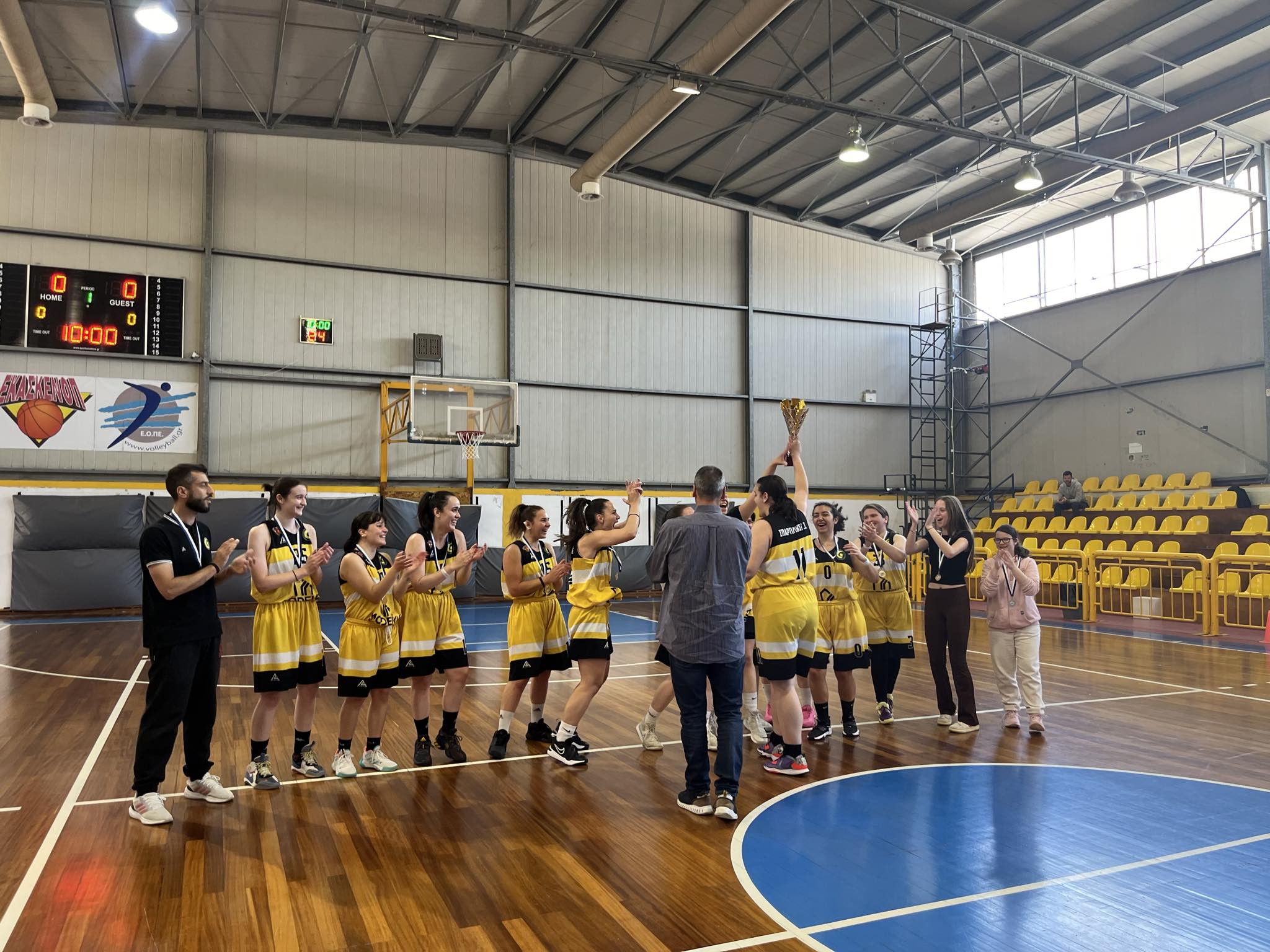 Στο φινάλε του τελευταίου ματς των μπαράζ απέναντι στον ΑΓΣ Ιωαννίνων, την περασμένη Κυριακή 21 Απριλίου στο κλειστό γυμναστήριο Σπάρτης, έγινε η απονομή του τροπαίου για το πρωτάθλημα της Α1΄ ΕΚΑΣΚΕΝΟΠ. Σε μια πανηγυρική ατμόσφαιρα, την απονομή έκανε ο δήμαρχος Σπάρτης, Μιχάλης Βακαλόπουλος, ο οποίος είναι γνωστό ότι είναι «μπασκετάνθρωπος» και δραστήριο διοικητικό στέλεχος της ΕΟΚ και της ΕΚΑΣΚΕΝΟΠ.