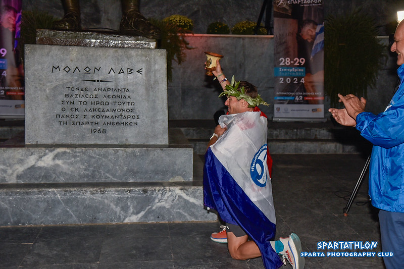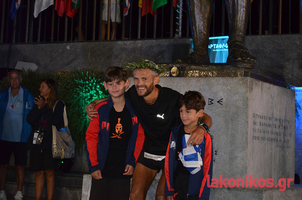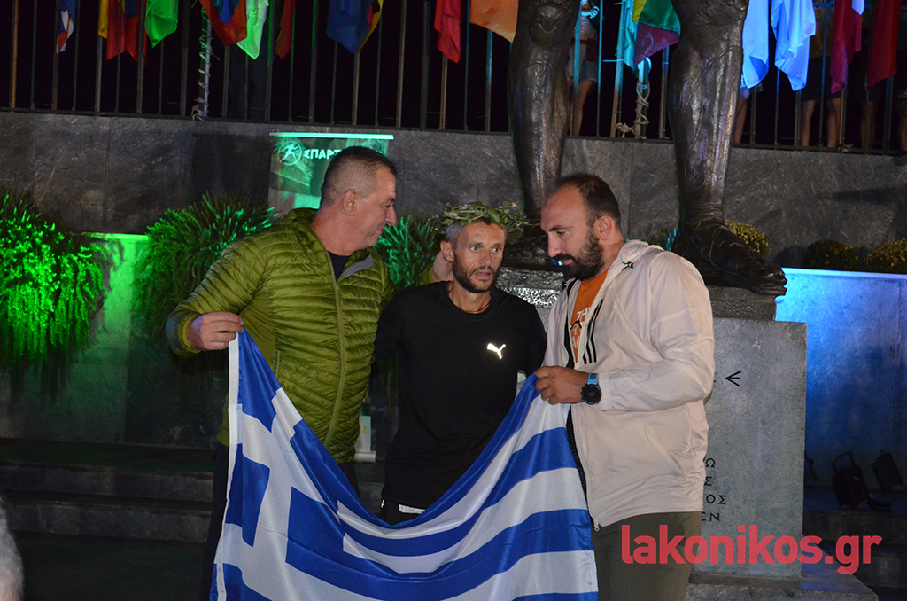 Ο 42χρονος αστυνομικός με καταγωγή από το Αγρίνιο, αν και αντιμετώπισε πολλές δυσκολίες μέσα στη μέρα, κατάφερε να ολοκληρώσει τον αγώνα μπροστά στο άγαλμα του βασιλιά Λεωνίδα στις 3.18΄ τα ξημερώματα της Κυριακής (29/9). Ο συνολικός χρόνος που χρειάστηκε ο ανυπέρβλητος αθλητής για να διανύσει τα 246 χιλιόμετρα της διαδρομής, από την Αθήνα ως τη Σπάρτη, ήταν 20:18΄:43΄΄, ταυτίζοντας πλέον το όνομά του -μαζί με εκείνο του Γιάννη Κούρου- οριστικά με τον θεσμό του Σπάρταθλον.