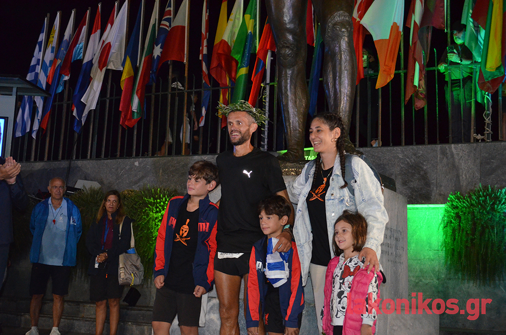 Παρά την κόπωση, ο Έλληνας πρωταθλητής υπεραποστάσεων μοιράστηκε τα συναισθήματά του με το κοινό, μιλώντας για τη χαρά του, αλλά και τα προβλήματα που τον οδήγησαν στα πρόθυρα εγκατάλειψης του αγώνα. Όμως, όπως τόνισε, η αγάπη του κόσμου τον βοήθησε να συνεχίσει, επαναλαμβάνοντας ότι η Σπάρτη είναι στην «καρδιά» του.