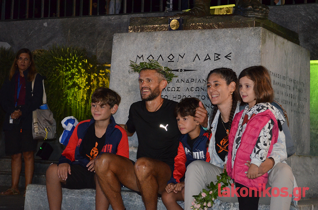 Η Σπάρτη τιμούσε τους ήρωές της με ένα στεφάνι ελιάς, από το ευλογημένο δέντρο της Λακωνίας, ίδιο με το στεφάνι που σήμερα “στεφάνωσε” όλους εσάς, που τερματίσατε στο άγαλμα του Βασιλιά Λεωνίδα, επιβεβαιώνοντας έτσι την Ηροδότεια αφήγηση που έφερε τον ημεροδρόμο Φειδιππίδη, να έχει πράξει το ίδιο κατά την αρχαιότητα.