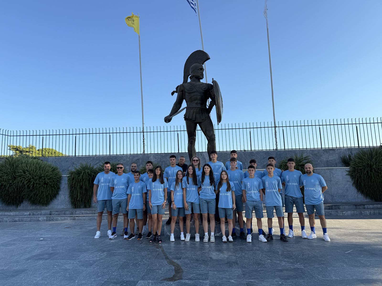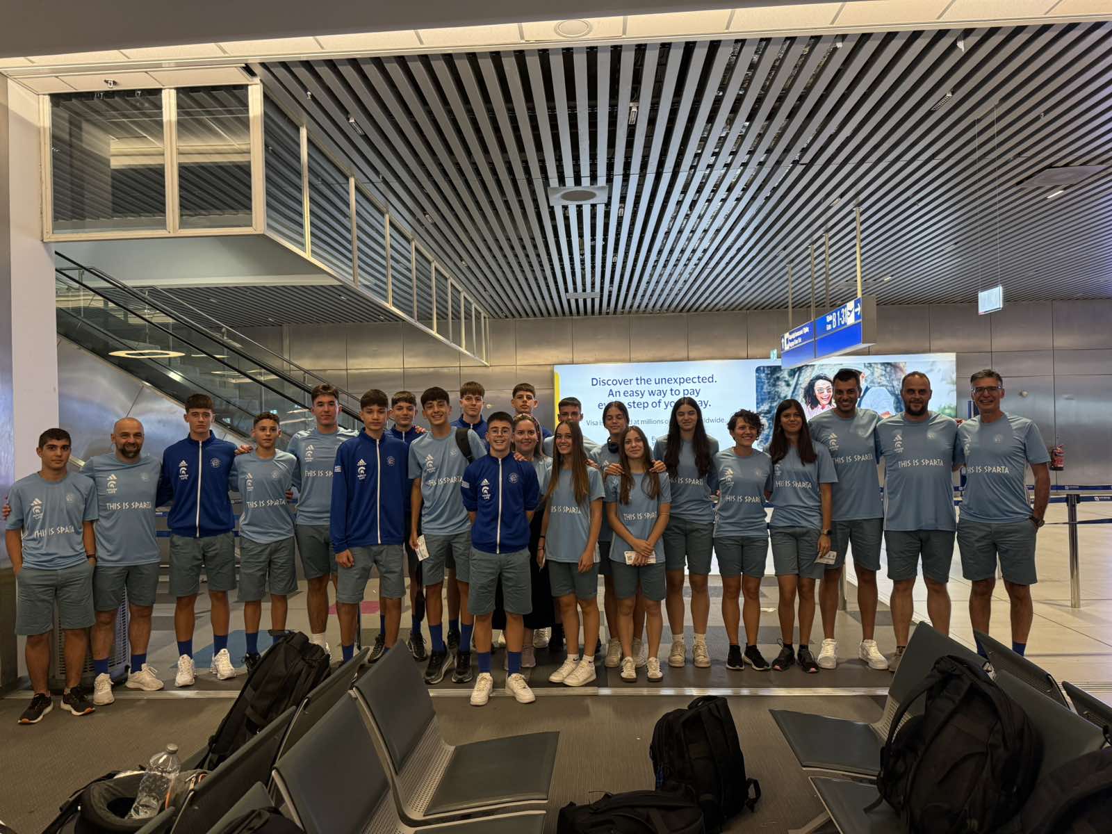 Στο πλευρό τους βρίσκονται η αρχηγός της αποστολής, Ευγενία Παπαδάκη και οι προπονητές τους, η Λυδία Κονίδη στον στίβο, ο Φίλιππος Καπονικολός στο ποδόσφαιρο και ο Ιωάννης Ρηγάκος στο beach volley. Την αποστολή συνοδεύουν ο αντιδήμαρχος Κοινωνικής Πολιτικής, Παιδείας και ΔΕ Μυστρά, Θεοφάνης Λάζαρης και ο εντεταλμένος δημοτικός σύμβουλος Πολιτισμού, Σπύρος Σελίμος.