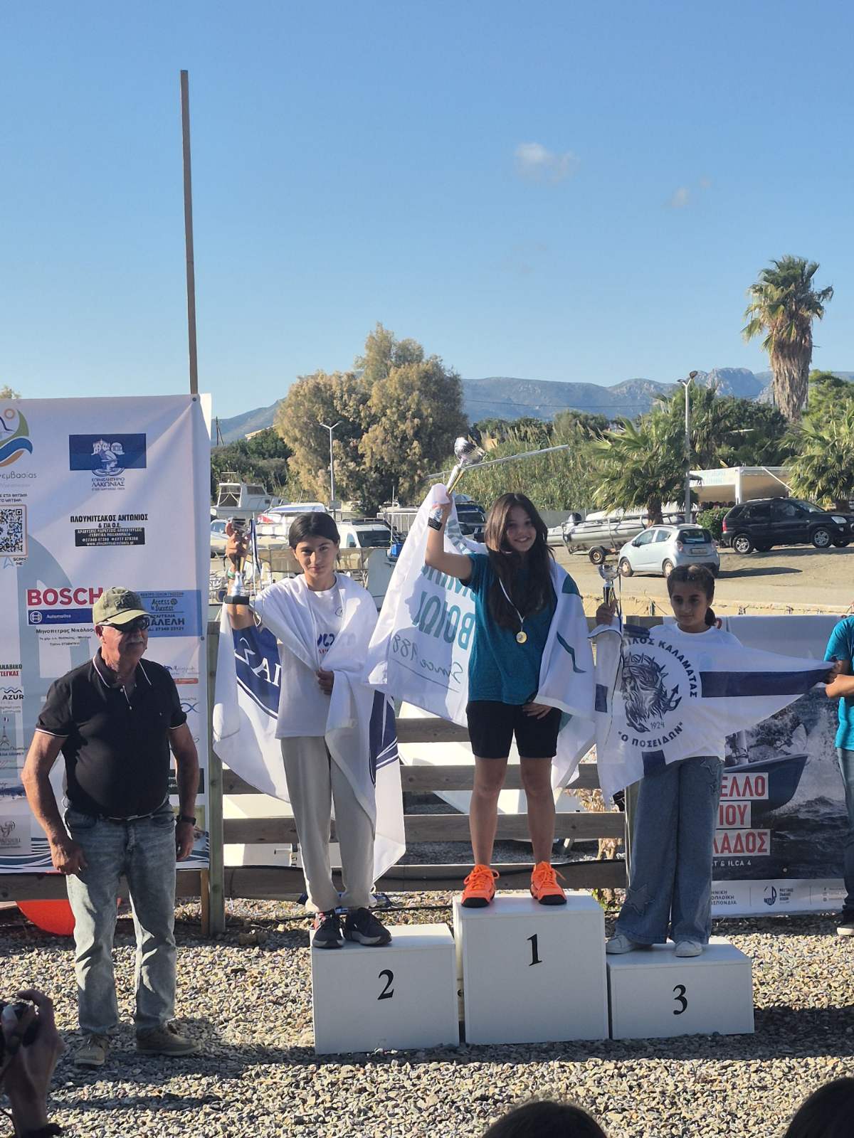 - Στην κατηγορία ILCA 4 έλαβαν μέρος ο Χάρης Μπουτεράκος και η Αναστασία Τσολομύτη.