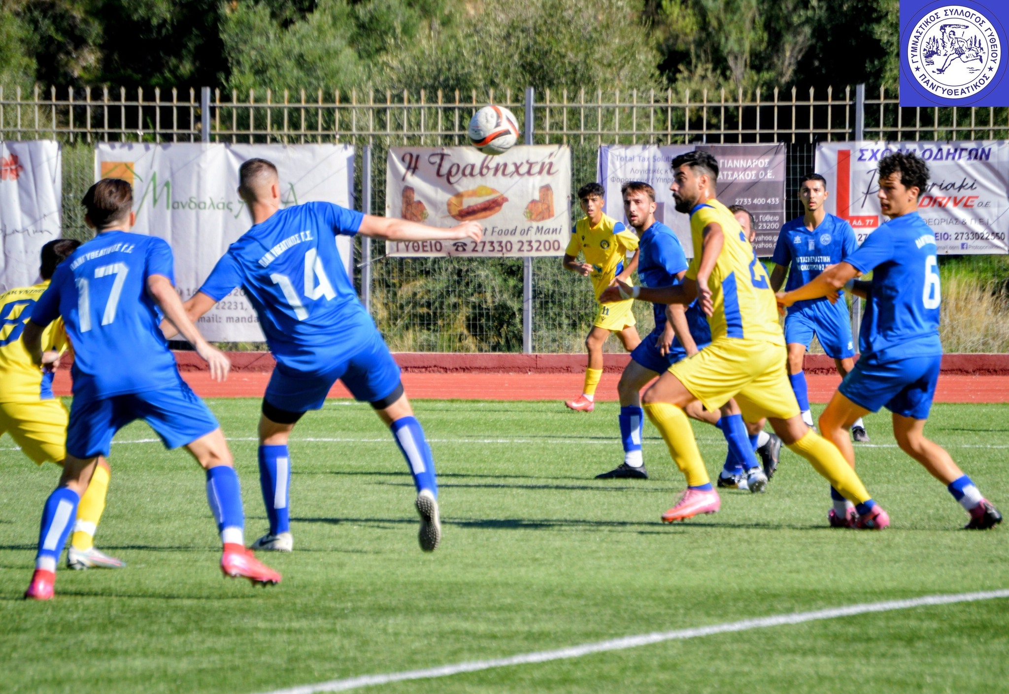 Μία ακόμη ήττα γνώρισε ο Πανγυθεατικός στην 9η αγωνιστική του 4ου Ομίλου της Γ’ Εθνικής Κατηγορία, αυτή τη φορά από τον πρωτοπόρο ΑΠΣ Ζάκυνθος με 1-3, σε ένα παιχνίδι που διεξήχθη την Κυριακή (16/11) στο νέο Δημοτικό Στάδιο Γυθείου στην περιοχή Σελινίτσας. Η ομάδα του Γυθείου παραμένει στην ουρά της βαθμολογίας, με μόλις 2 βαθμούς, αλλά η εμφάνισή της απέναντι στους νησιώτες έδειξε ότι η προσπάθεια και η μαχητικότητα δεν λείπουν.
