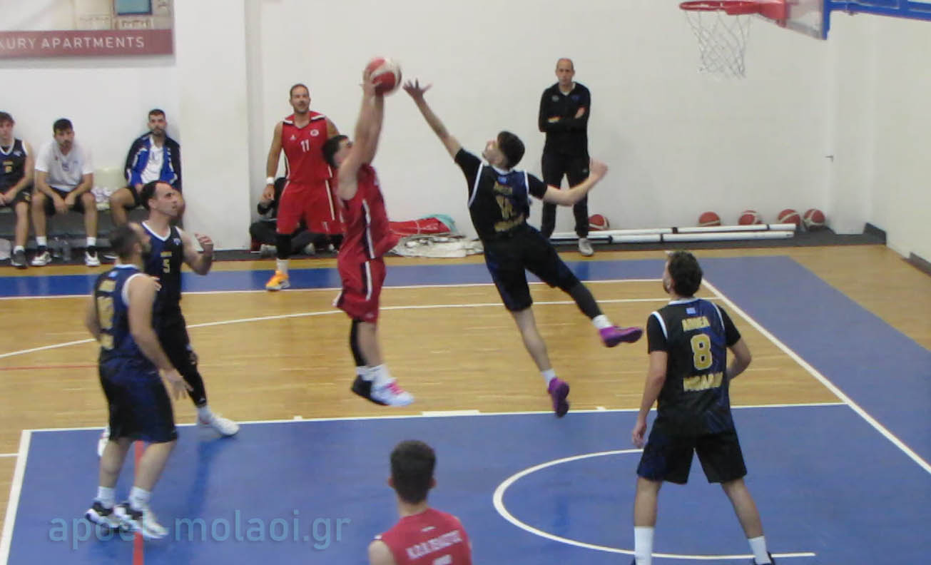 Ο ΑΠΟΕΛ Μολάων επιβεβαίωσε την ισχύ του και συνέχισε την πορεία πρωταθλητισμού, επικρατώντας με 72-46 του Πελασγού, διατηρούμενος σταθερά στη 2η θέση του πίνακα. Οι Μολαΐτες είχαν τον έλεγχο σε όλη τη διάρκεια του παιχνιδιού, με τον Κατσουρίνη να ξεχωρίζει με 18 πόντους. Η κυριαρχία του ΑΠΟΕΛ αποτυπώνεται και στα δεκάλεπτα: 20-6, 38-18, 55-30, 72-46.