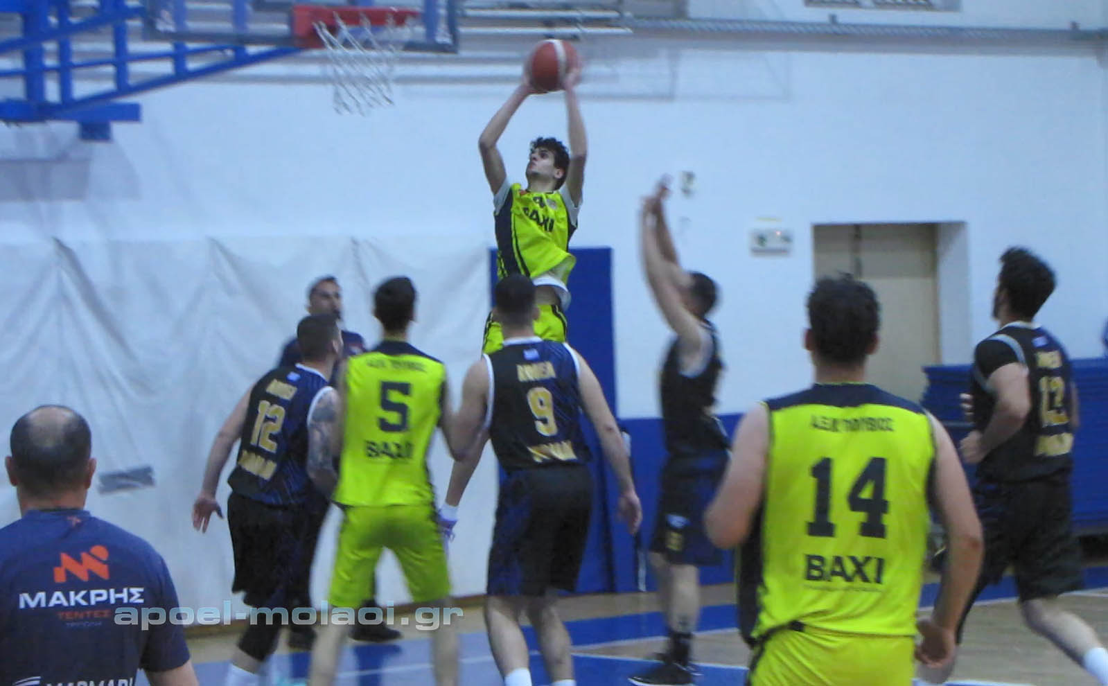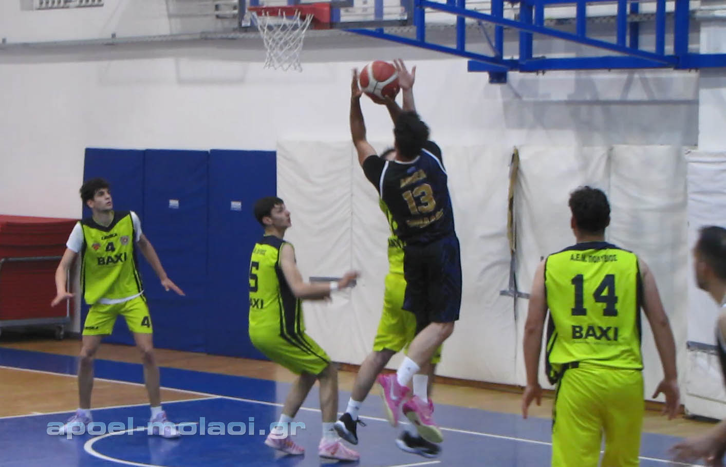 O ΑΠΟΕΛ Μολάων συνεχίζει ακάθεκτος την εντυπωσιακή του πορεία, συνδυάζοντας ουσία και θέαμα. Η εντός έδρας, ευρεία νίκη επί του Πολύβιου με 83-53, εκτός από ένα ακόμα «ροζ φύλλο» που διατήρησε τον ΑΠΟΕΛ μόνο δεύτερο στη βαθμολογία, ήταν η επιβεβαίωση της αγωνιστικής ανωτερότητας μιας ομάδας που δείχνει να βρίσκεται στο απόγειο της απόδοσής της. Με πλουραλισμό στην επίθεση, σωστή κατανομή του χρόνου συμμετοχής και σταθερότητα σε άμυνα και ρυθμό, το σύνολο του Κατσούλη έφτασε τις 14 νίκες. Η επίδοση αυτή αποτελεί ρεκόρ στην ιστορία του συλλόγου σε όλα τα πρωταθλήματα της ΕΚΑΣΚΕΝΟΠ, αλλά και της ΤΕ ΕΟΚ Λοιπής Πελοποννήσου. Πρώτοι σκόρερ για τους Μολαΐτες ήταν οι Ευ. Φραγκιάς (17 π.), Κυρ. Μπατσάκης (15 π.) και Σωκρ. Νικολακάκος (15 π.).