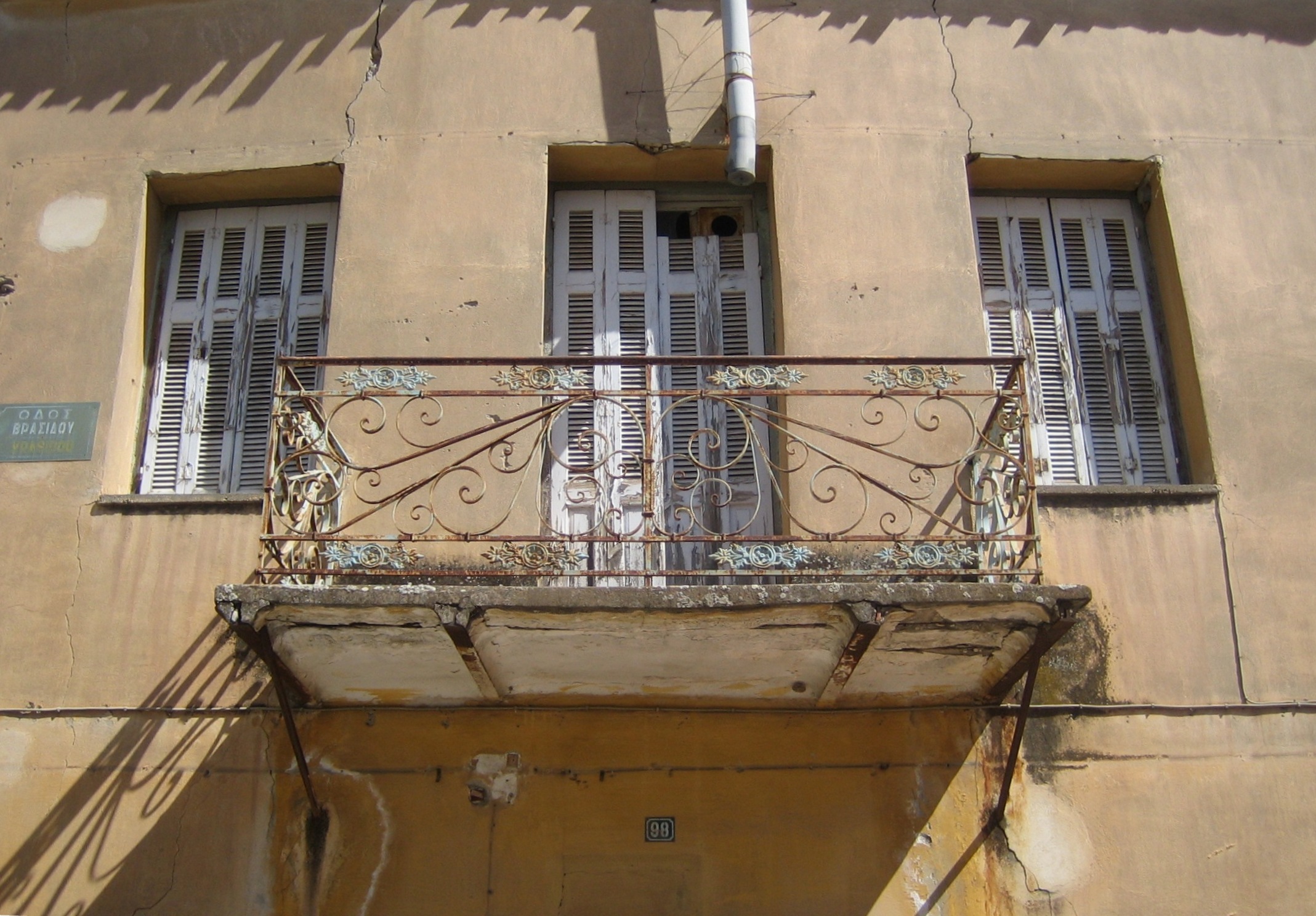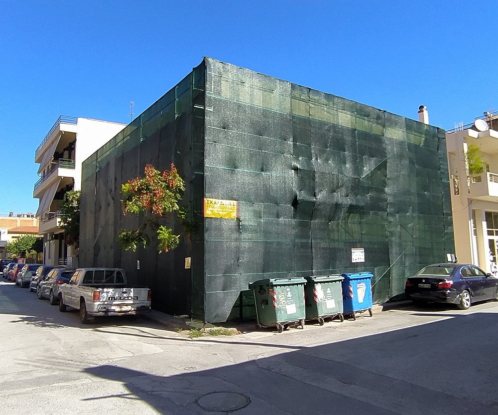Με τον τρόπο αυτό γράφτηκε η λέξη «τέλος» και για το επιβλητικό παλαιό σπίτι στη διασταύρωση Βρασίδου 98 και Α. Νίκωνος 118. Ένα λιθόχτιστο, μεγάλο, σοβαρό, διώροφο σπίτι, σοβατισμένο, ίσως των αρχών του 20ου αιώνα. Μοναδικό του στολίδι το περίτεχνο κιγκλίδωμα του μπαλκονιού (καράβολα δουλεμένα στο χέρι μαζί με χυτά στοιχεία) και τα παλιά κεραμίδια που προεξείχαν, χωρίς γείσο, στην άκρη της στέγης. Παρ’ όλη τη δωρική του λιτότητα, το σπίτι αυτό, σε εντυπωσίαζε με τον όγκο και την αυστηρότητά του και με τις παλιές ώχρες, που ακόμα φώτιζαν τους τοίχους του. Στο ισόγειο είχε παράθυρα παραδοσιακά, με μικρή καμάρα στο πάνω μέρος και με εσωτερικά ξύλινα συμπαγή παντζούρια (σκιάδια). Στο πλάι του είχε μικρή αυλή και σκάλα με βεράντα για την είσοδο στον όροφο.