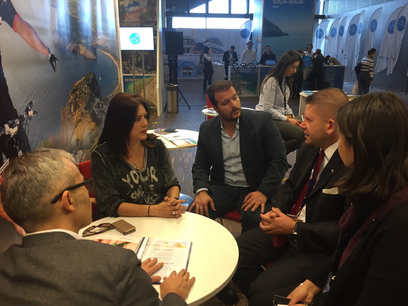 Στο περίπτερο της Περιφέρειας Πελοποννήσου η θεματική αντιπεριφερειάρχης κα. Κωνσταντίνα Νικολάκου υποδέχθηκε τους εκπροσώπους της Περιφέρειας Μαζόβια της Πολωνία, Izabela Stelmanska διευθύντρια προβολής, πολιτισμού και τουρισμού, Justyna Niedzielak, διευθύντρια του Γραφείου Επιχειρηματικής συνεργασίας και τη διευθύντρια του περιφερειάρχη Dorota Pozorek.