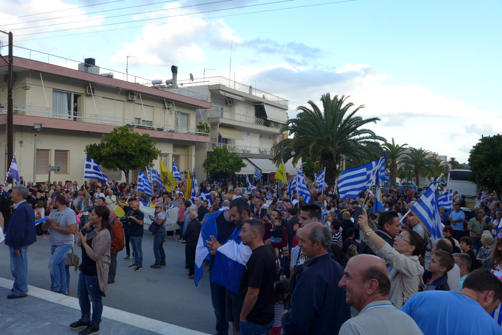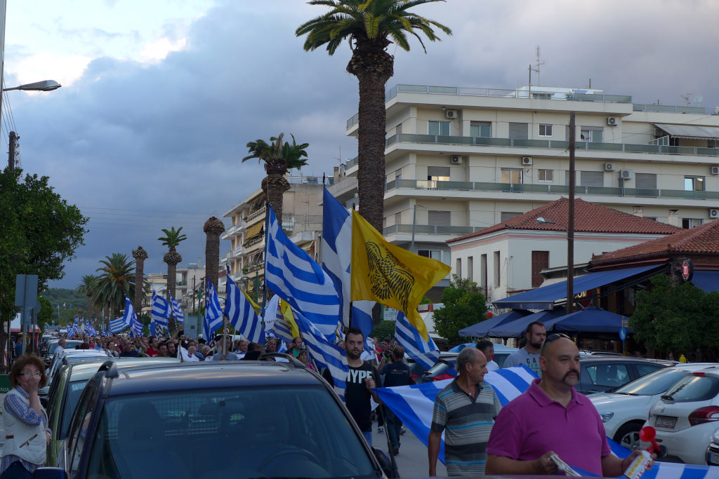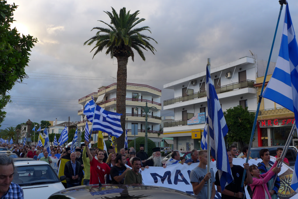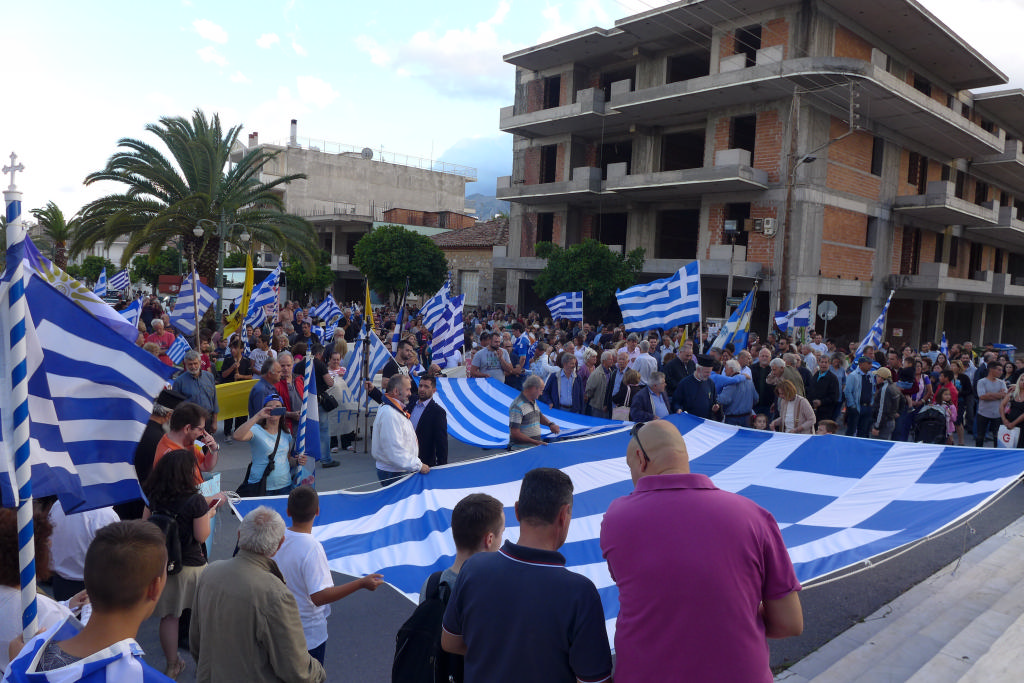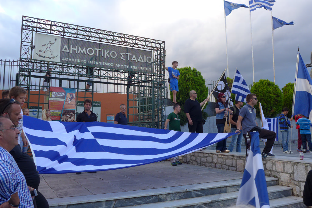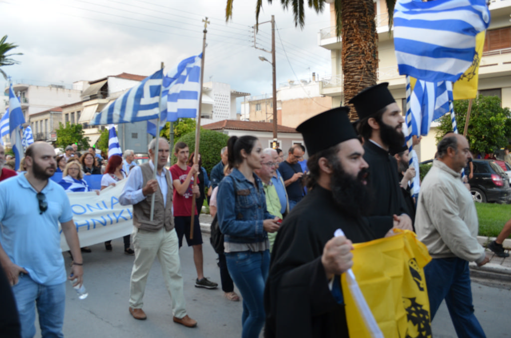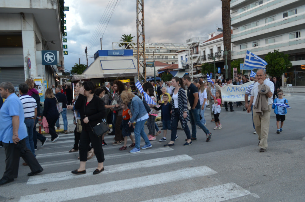 Με συνθήματα όπως «Ελλάς-Ελλάς, ή ταν ή επί τας», «σάς το φωνάζει η Σπάρτη και όλη η Λακωνία, κάτω τα χέρια απ' τη Μακεδονία», τραγούδια όπως το «Μακεδονία ξακουστή», με σημαίες και πανό ανά χείρας όπου αναγράφονταν φράσεις όπως «Λακωνία: Οι Θερμοπύλες της Μακεδονίας», εκατοντάδες Σπαρτιάτες, αλλά και πολίτες από διάφορες περιοχές της Λακωνίας, διαδήλωσαν το απόγευμα της Πέμπτης (28/6) στη Σπάρτη ενάντια στη συμφωνία για τη Μακεδονία.