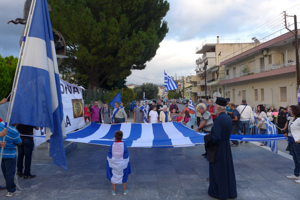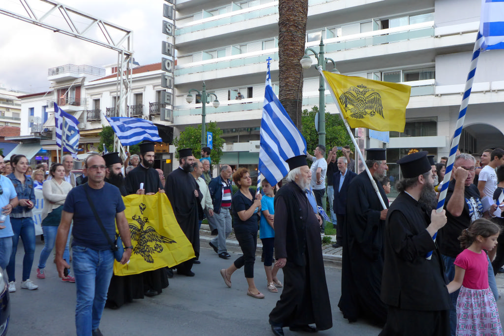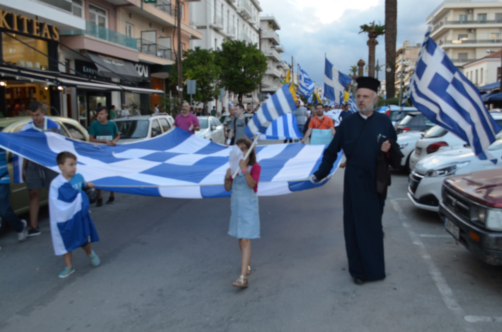 Η συγκέντρωση ολοκληρώθηκε με τους διαδηλωτές να ψάλλουν «Τη Υπερμάχω» και τον Εθνικό Ύμνο, προκαλώντας ρίγη συγκίνησης σε όλους όσοι βρέθηκαν στον χώρο. Μπροστάρης ο π. Γεώργιος Μπλάθρας, ο οποίος μαζί με τον π. Αθανάσιο Σπηλιώτη και πλειάδα ιερέων εκπροσώπησαν με υποδειγματικό τρόπο την τοπική Εκκλησία και τις πατριωτικές αξίες και τα ιδανικά που αυτή πρεσβεύει.