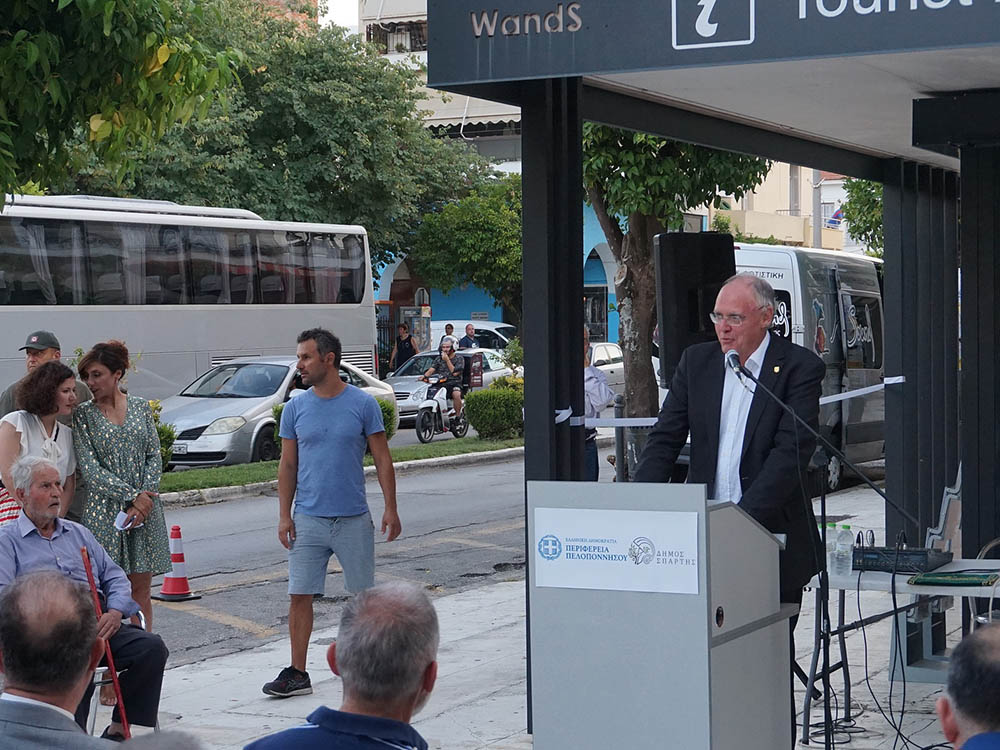 Η επαναλειτουργία του περιπτέρου έγινε δυνατή μέσα από την αποτελεσματική συνεργασία-σύμπραξη της Περιφέρειας Πελοποννήσου, του Δήμου Σπάρτης και της Πελοπόννησος ΑΕ.