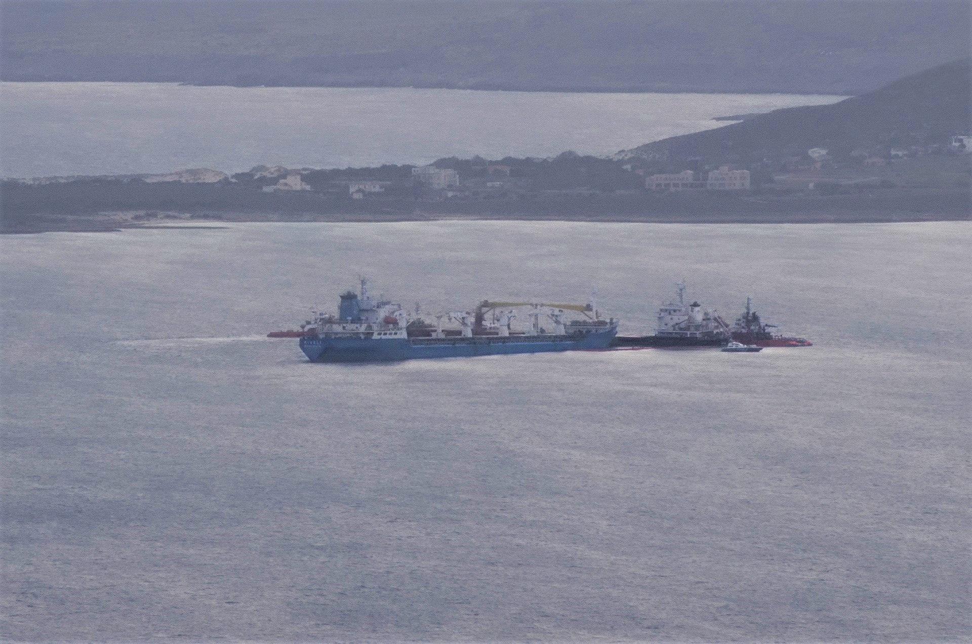 Ωστόσο, και περί τις μεσημεριανές ώρες της Κυριακής 14 Μαρτίου 2021, διεπιστώθη ότι τα δύο πλοία ρυμουλκήθηκαν, δίχως να έχουν αποκολληθεί, σε έτερη θαλάσσια περιοχή, 10 περίπου μίλια μακριά από την περιοχή του ναυτικού ατυχήματος, και συγκεκριμένα στον όρμο της παραλίας Λεύκη της Ελαφονήσου -πλησίον του Παυλοπετρίου και σε απόσταση αναπνοής από την διπλή παραλία του Σίμου, ως εμφαίνεται και από τις συνημμένες σημερινές χερσαίες φωτογραφίες.
