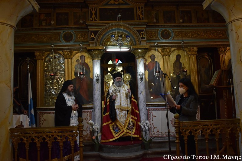 Με την παραπάνω λιτή αλλά ουσιαστική δήλωση ο Σεβασμιώτατος Μητροπολίτης Μάνης κ. Χρυσόστομος Γ’ έλυσε την επίσημη Δοξολογία της 25ης Μαρτίου που τελέστηκε στον Ιερό Ναό του Αγίου Γεωργίου Γυθείου.