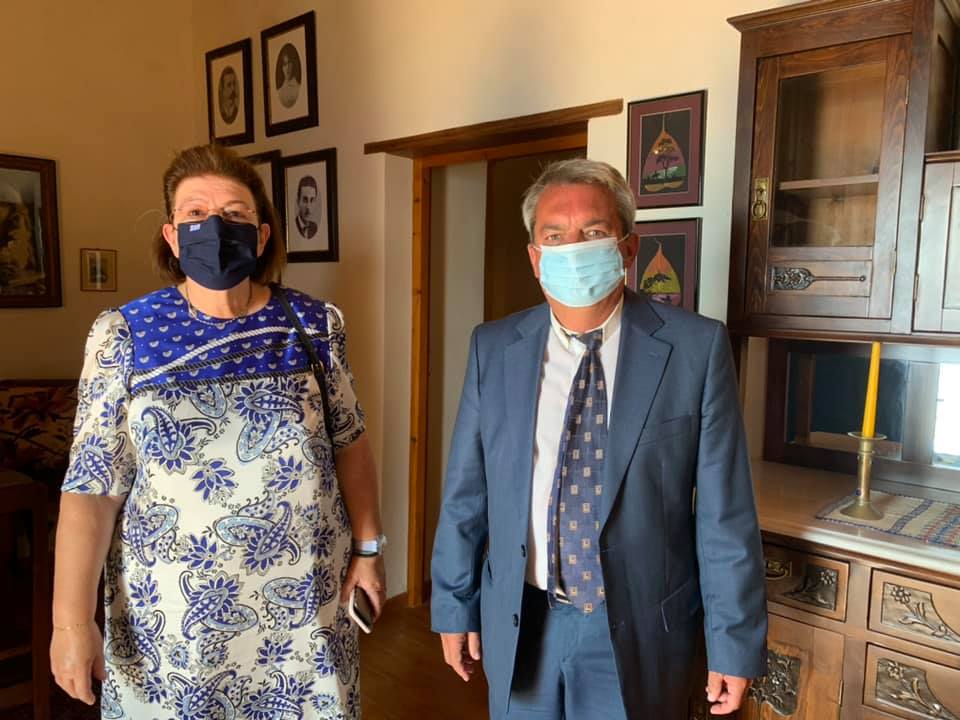 Κατά το τέλος της επίσκεψης, ο κ. Τριχείλης προσέφερε στην κ. Μενδώνη βιβλία και τοπικά προϊόντα της περιοχής.