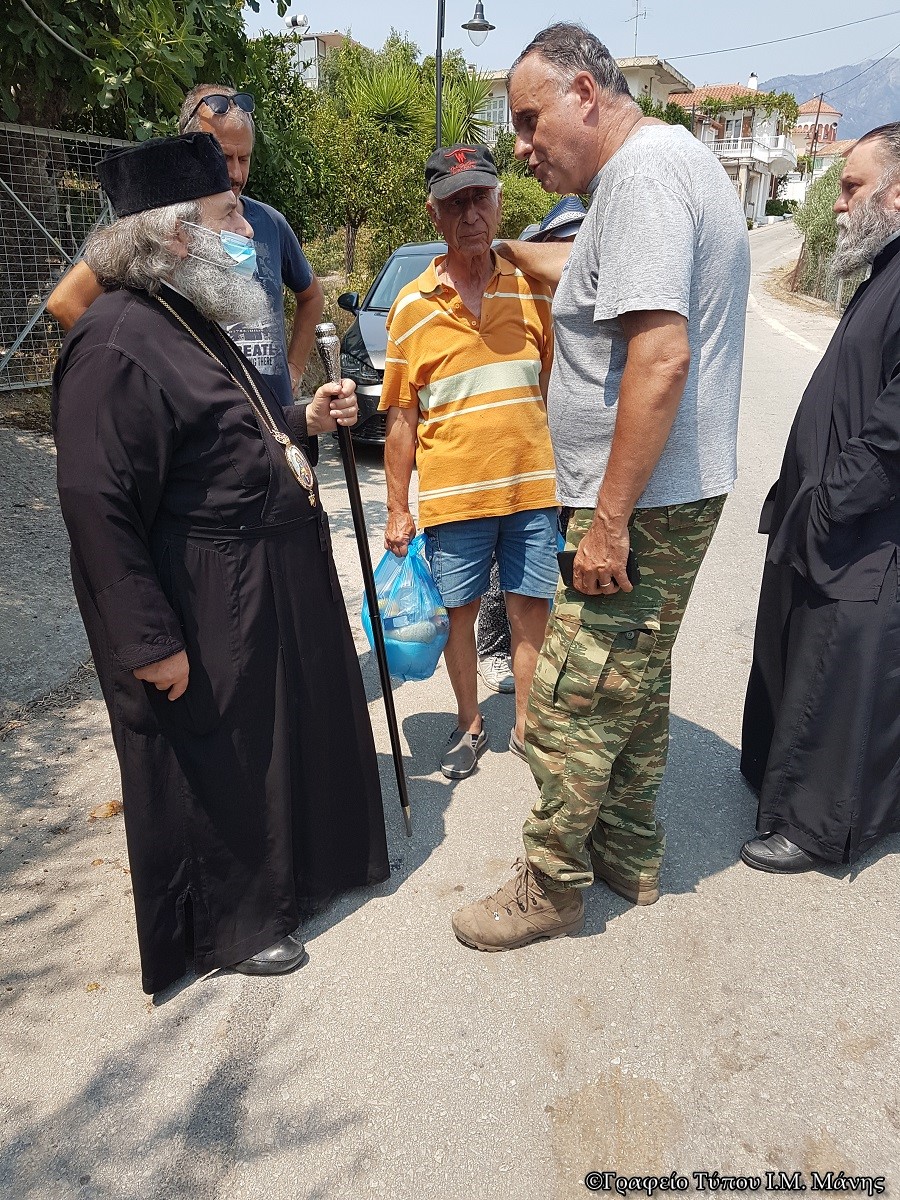 Με εντολή του Μητροπολίτη Μάνης κ. Χρυσόστομου Γ΄, δίνοντας το σύνθημα «τώρα ὁ Θεός μᾶς λέγει ἄνοιξε τήν ἀποθήκη», όλα τα τρόφιμα και είδη πρώτης ανάγκης του Κοινωνικού Παντοπωλείου και της «Γωνιάς Αγάπης» του Φιλοπτώχου Ταμείου της Ιεράς Μητρόπολης Μάνης παρασχέθηκαν στους πυρόπληκτους κατοίκους της περιοχής.