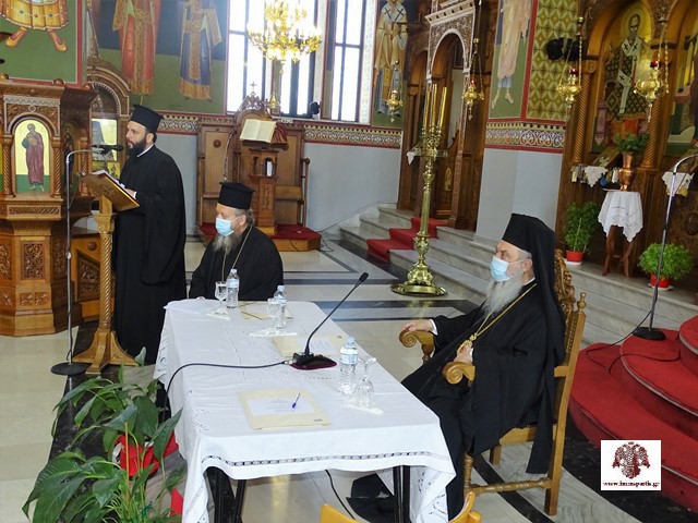Ακολούθησε η προσφώνηση του σεπτού ποιμενάρχη κ. Ευσταθίου, ο οποίος αρχικά ευχαρίστησε τον διακεκριμένο ομιλητή, πρωτ. Θεμιστοκλή Χριστοδούλου, εκλεκτό κληρικό και έγκριτο θεολόγο της Ιεράς Αρχιεπισκοπής Αθηνών, για την αποδοχή της πρόσκλησής του, μιλώντας με θερμά λόγια για το ήθος, την προσωπικότητα, την εργατικότητα και την πνευματική προσφορά του στον χώρο της Εκκλησίας. Ακολούθως, κηρύσσοντας την έναρξη των εργασιών, επισήμανε στους κληρικούς τη σπουδαιότητα του θέματος.