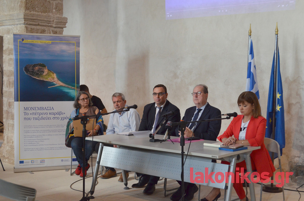 Στην παρουσίαση παραβρέθηκαν η εκπρόσωπος της Ευρωπαϊκής Ένωσης Ανιές Μονφρέ, ο περιφερειάρχης Πελοποννήσου Παναγιώτης Νίκας, ο αντιπεριφερειάρχης Λακωνίας Θεόδωρος Βερούτης, ο θεματικός αντιπεριφερειάρχης Νίκωνας Τζινιέρης, ο αντιδήμαρχος Δήμου Μονεμβασίας Σταύρος Χριστάκος, η αρχαιολόγος της Εφορείας Αρχαιοτήτων Λακωνίας (ΕΦΑΛΑΚ) Παναγιώτα Σκάγκου, εκπρόσωποι φορέων και μέσων μαζικής ενημέρωσης.