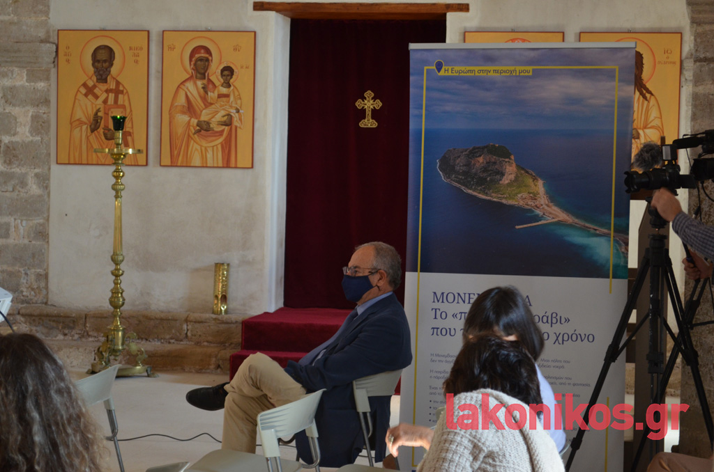 Την καμπάνια υπό τον τίτλο «Η Ευρώπη στην περιοχή μου» υποδέχτηκε η Περιφέρεια Πελοποννήσου στον αποκατεστημένο ιερό ναό Αγίου Νικολάου στην καστροπολιτεία της Μονεμβασιάς, σε εκδήλωση που πραγματοποιήθηκε την Πέμπτη 21 Οκτωβρίου.