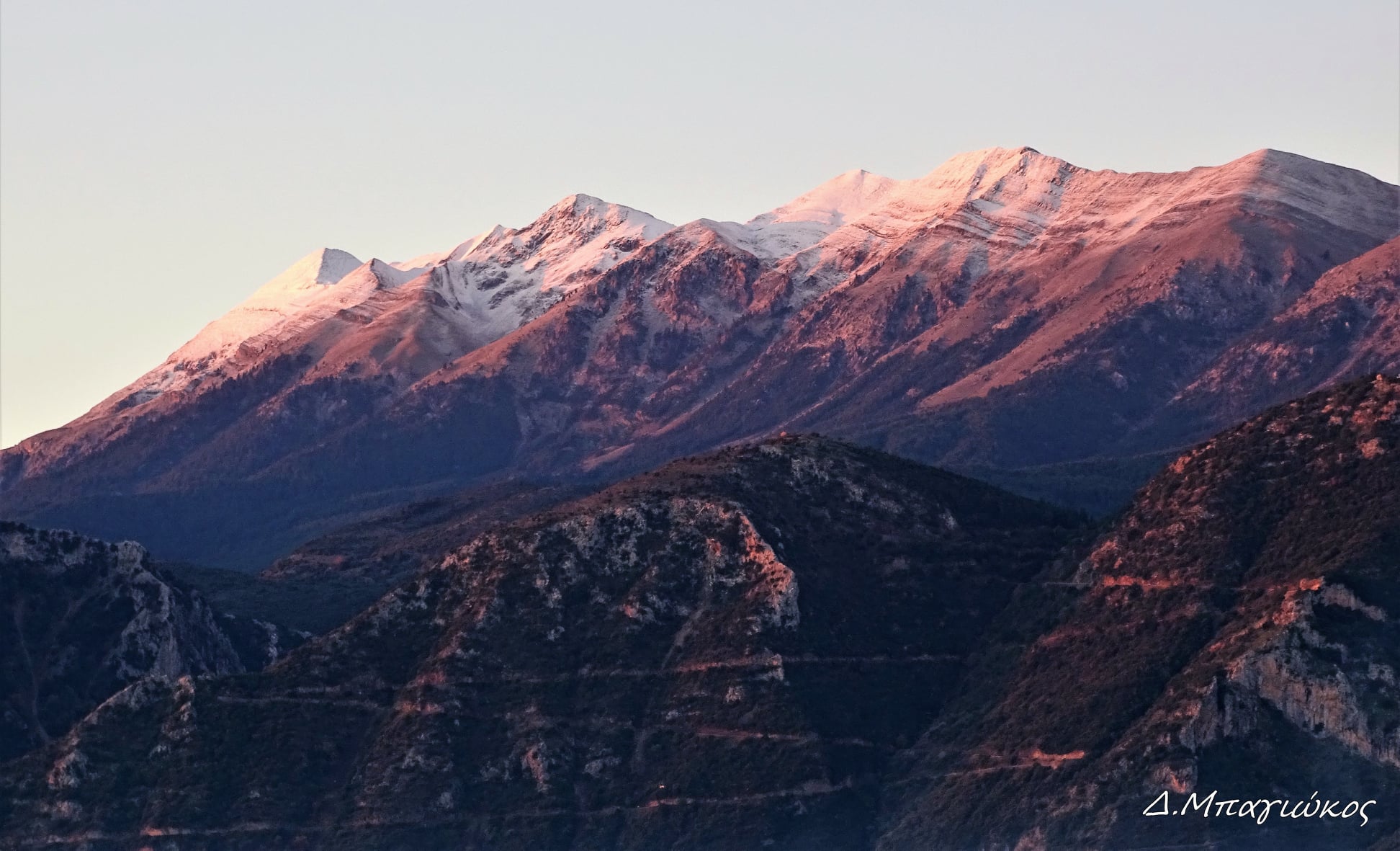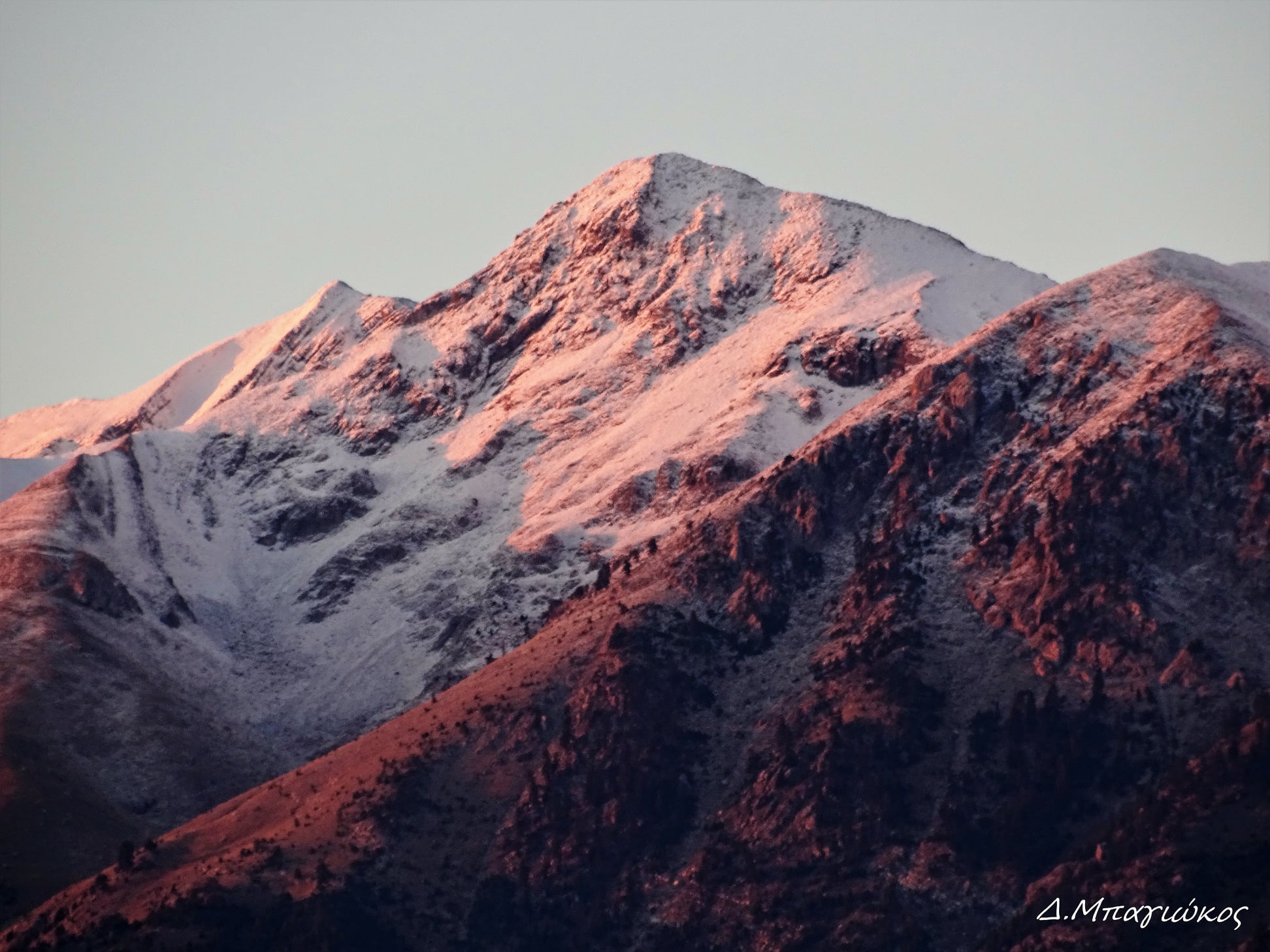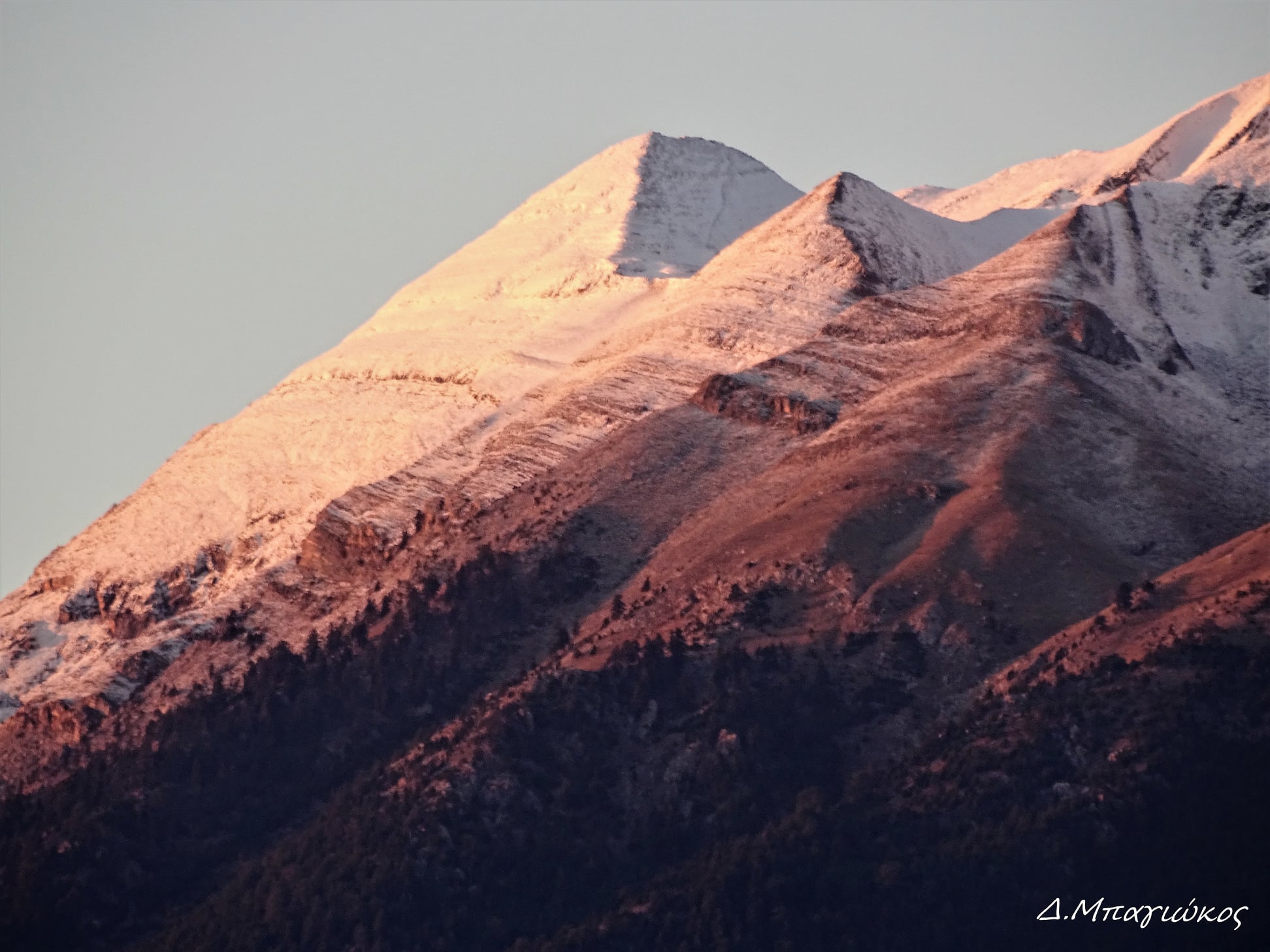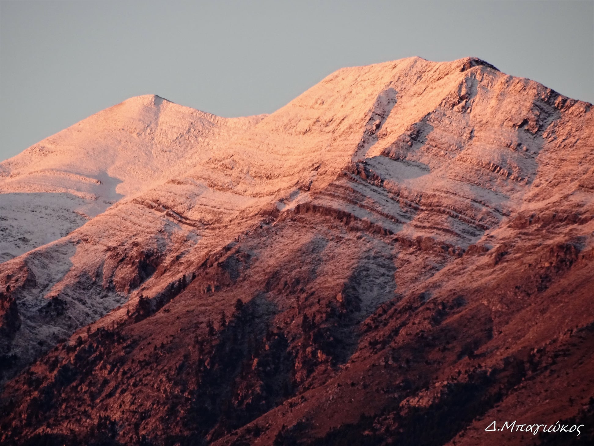 Η πτώση της θερμοκρασίας σε ολόκληρη τη χώρα, έφερε τις πρώτες νιφάδες χιονιού στην Πυραμίδα του βουνού που αποτελεί την υψηλότερη κορυφή του με 2.407 μ. Υψόμετρο.