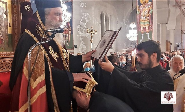 Νωρίτερα, ο σεπτός Ποιμενάρχης χειροθέτησε Αναγνώστη έναν ευσεβή νέο της περιοχής, τον Νικόλαο Παναγιώτη Καλαντζή, ο οποίος είναι φοιτητής του τμήματος Πολιτικής και Διεθνών Σχέσεων του Πανεπιστημίου Πελοποννήσου. Ο Σεβασμιώτατος μίλησε με εγκωμιαστικά λόγια για το νέο Αναγνώστη υπογραμμίζοντας το ήθος και την αγάπη του για την Εκκλησία, ενώ του ευχήθηκε υγεία σωματική και ψυχική, καθώς και να συνεχίσει να αγαπά με πάθος τον Χριστό, έτσι ώστε τις ώρες του πειρασμού να μην λυγίσει, αλλά να παραμείνει στον ενάρετο δρόμο που ήδη διαβαίνει.