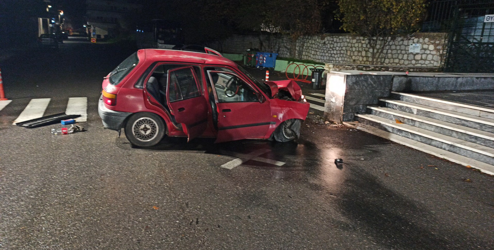 Οι επιβαίνοντες είναι όλοι καλά στην υγεία τους ενώ σύμφωνα με πληροφορίες ο οδηγός του οχήματος έχασε τον έλεγχο λόγω του ολισθηρού από τη βροχόπτωση οδοστρώματος.