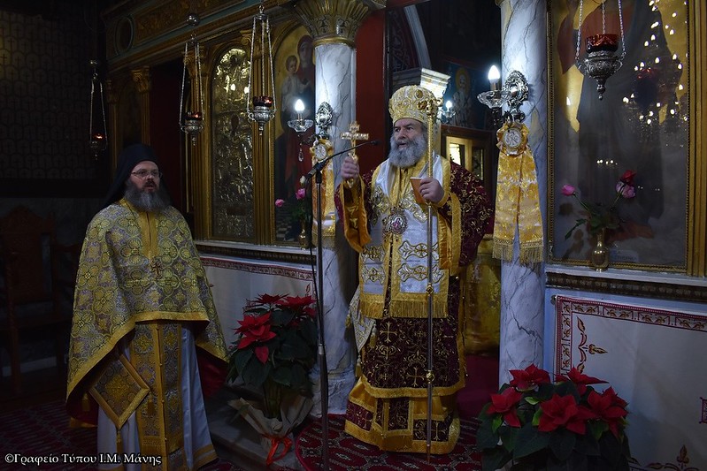 Η Θεία Λειτουργία των Χριστουγέννων τελέστηκε στον Καθεδρικό Ναό του Αγίου Γεωργίου Γυθείου. Ο σεβασμιώτατος Μητροπολίτης Μάνης κ. Χρυσόστομος Γ’ μετέβη στον ναό και τέλεσε τη λειτουργία, συμπαραστατούμενος από τον προϊστάμενο του ναού π. Νήφωνα Καρολεμέα.