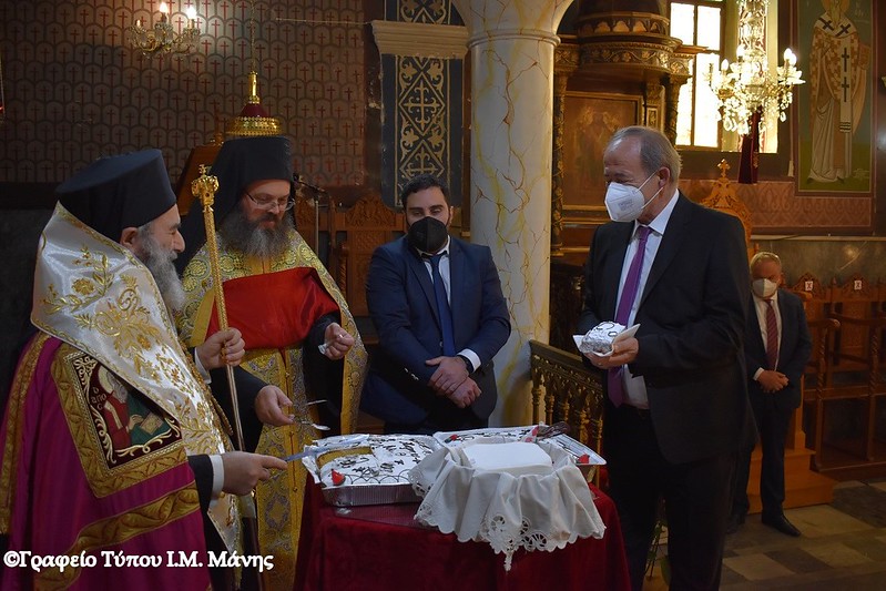 Μετά το πέρας της Δοξολογίας ο Σεβ. Ποιμενάρχης μας, ευχήθηκε, ευλογημένη χρονιά από το Θεό, ενώ προηγουμένως ανεγνώσθη, υπό του προϊσταμένου του Ι. Ναού και Γενικού Αρχιερατικού Επιτρόπου π. Νήφωνος Καρολεμέα, το μήνυμα του Σεβ. προς τους Μανιάτες του εξωτρικού με την ευκαιρία της πρωτοχρονιάς 2022. (Πατήστε εδώ.)
