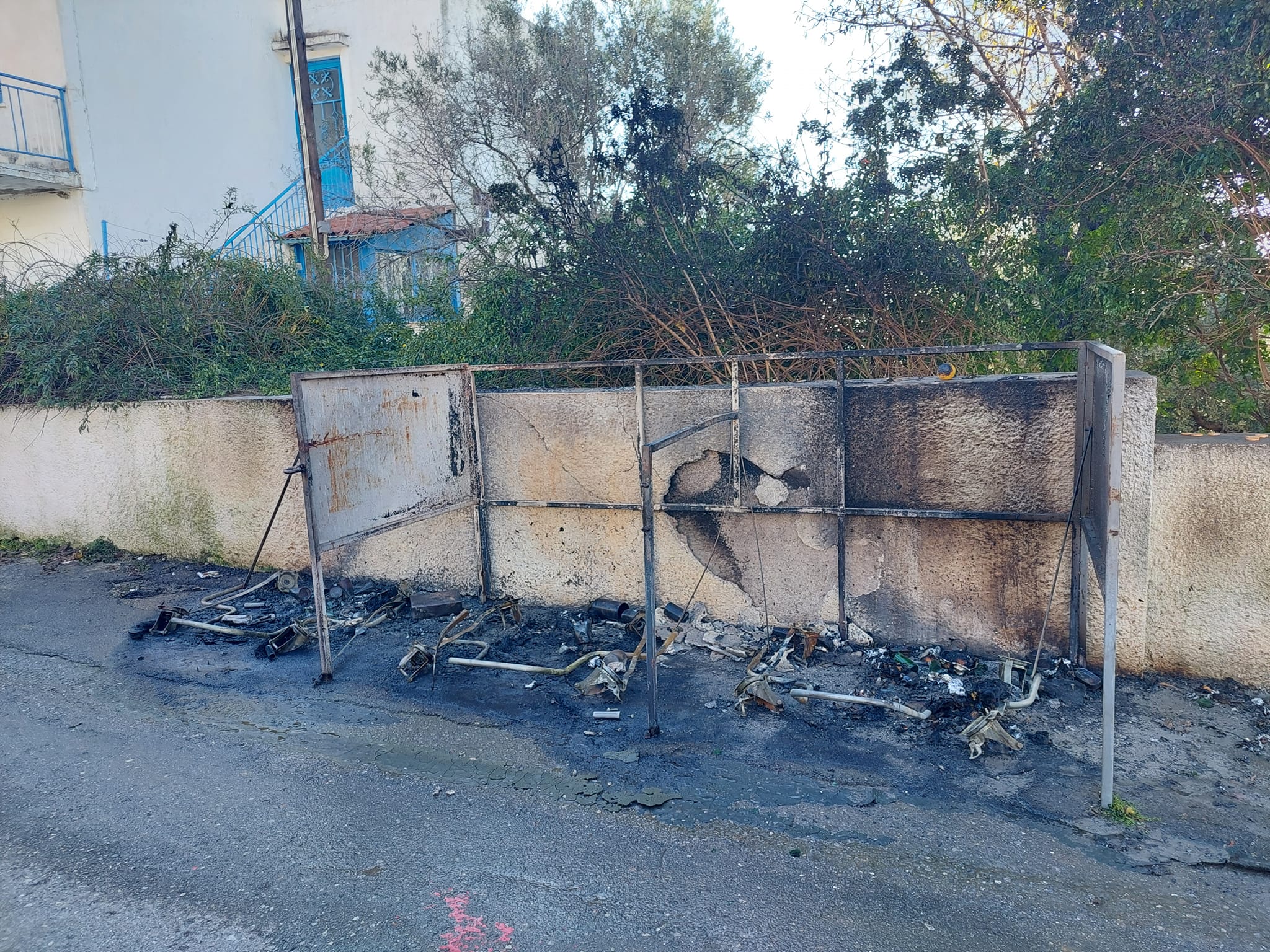 Στις φλόγες παραδόθηκαν το πρωί της Παρασκευής οι κάδοι απορριμμάτων που βρίσκονται στην πλατεία του Μαυροβουνίου του Δήμου Ανατολικής Μάνης.