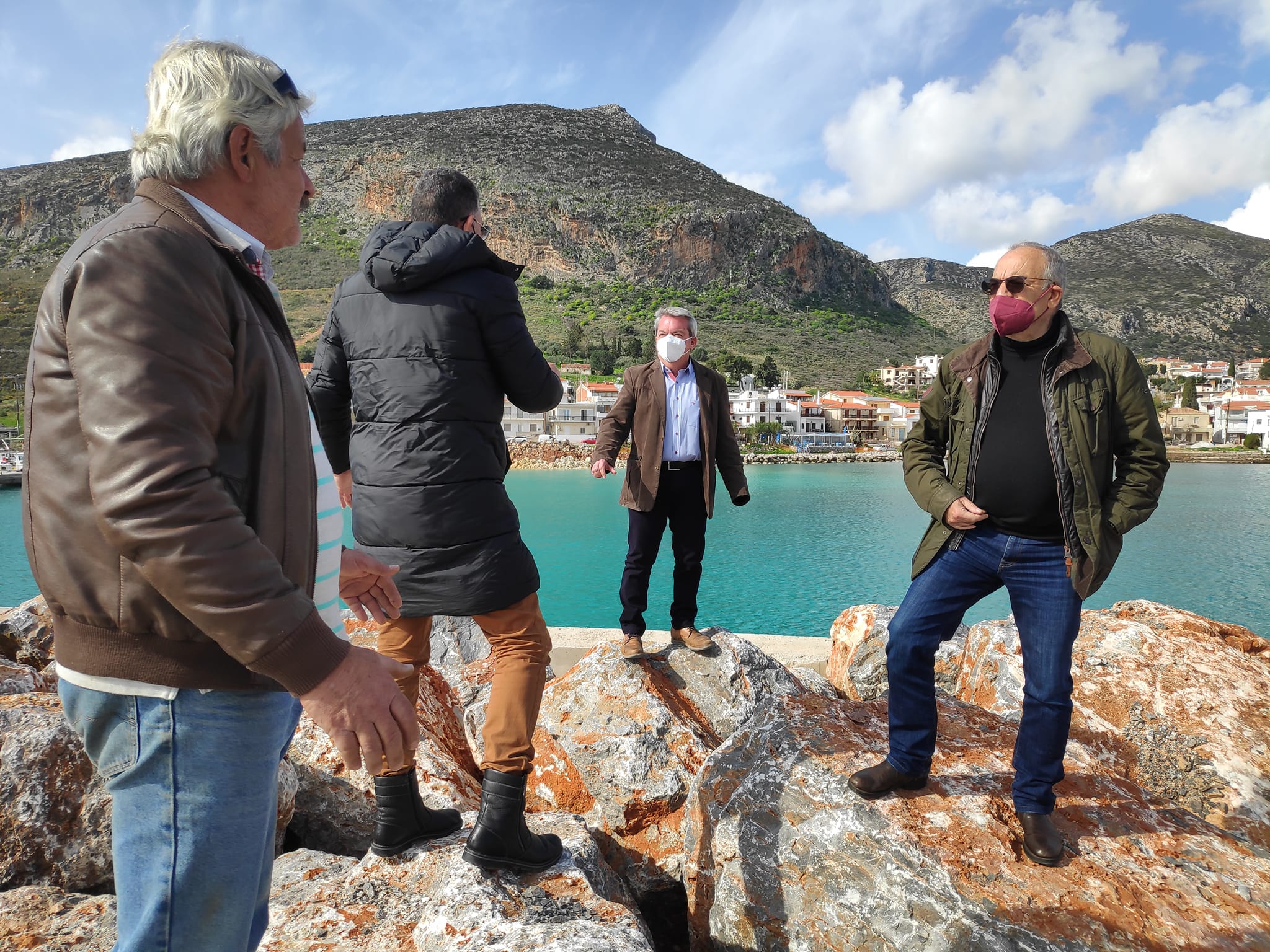Το έργο «Επέκτασης της Μαρίνας Μονεμβασίας», προϋπολογισμού 1.500.000 ευρώ, το οποίο ολοκληρώνεται σύμφωνα με το χρονοδιάγραμμά του, επιθεώρησε την Τετάρτη (16/2) ο αντιπεριφερειάρχης Λακωνίας Νίκωνας Τζινιέρης, μαζί με τον προϊστάμενο των Συγκοινωνιακών Έργων Άγγελο Πλειώτα και τον αντιδήμαρχο Μονεμβασίας Σταύρο Χριστάκο.