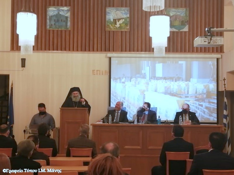 Απευθυνόμενος στον επιχειρηματικό κόσμο απ’ όλους τους παραγωγικούς κλάδους, ο σεβασμιώτατος Μητροπολίτης Μάνης, μεταξύ άλλων, είπε: «Ο παρών βίος είναι ως η θάλασσα. Μια φορά τρικυμία και την άλλη γαλήνη. Έτσι βιώνουμε θλίψη με την πανδημία του κορωνοϊού και προστέθηκε τώρα και ο φρικτός πόλεμος στην Ουκρανία. Ωστόσο μην απογοητευόμεθα και μη πτοούμεθα ηθικώς. Ζή Κύριος ο Θεός. Να έχουμε “βεβαία την ελπίδα” και ας προσευχώμεθα, ο Ύψιστος, να δώσει σ’ όλους μας και στην ανθρωπότητα ολόκληρη, τα ύψιστα αγαθά, υγεία και ειρήνη».