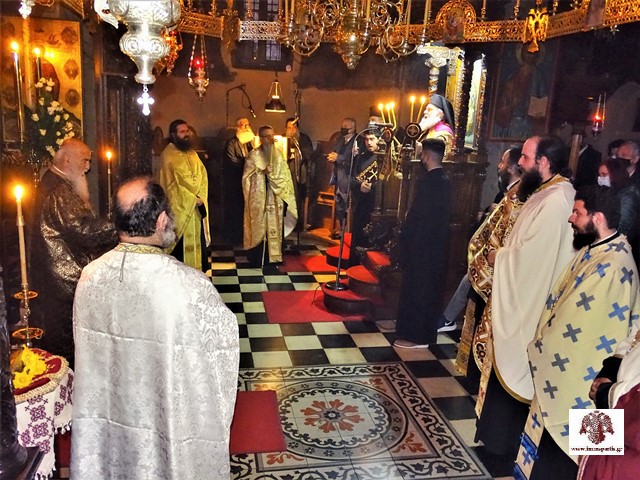 Ειδικότερα, το απόγευμα της παραμονής τελέσθηκε ο πανηγυρικός Δισαρχιερατικός Εσπερινός μετ’ αρτοκλασίας χοροστατούντος του Σεβασμιωτάτου Μητροπολίτη Μάνης κ. Χρυσοστόμου, ο οποίος είχε προσκληθεί από τον Μητροπολίτη κ. Ευστάθιο.