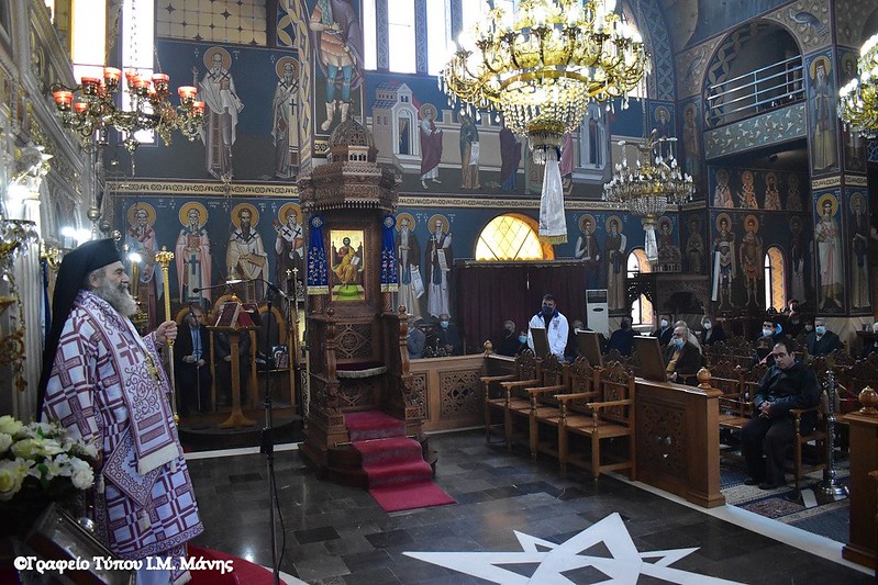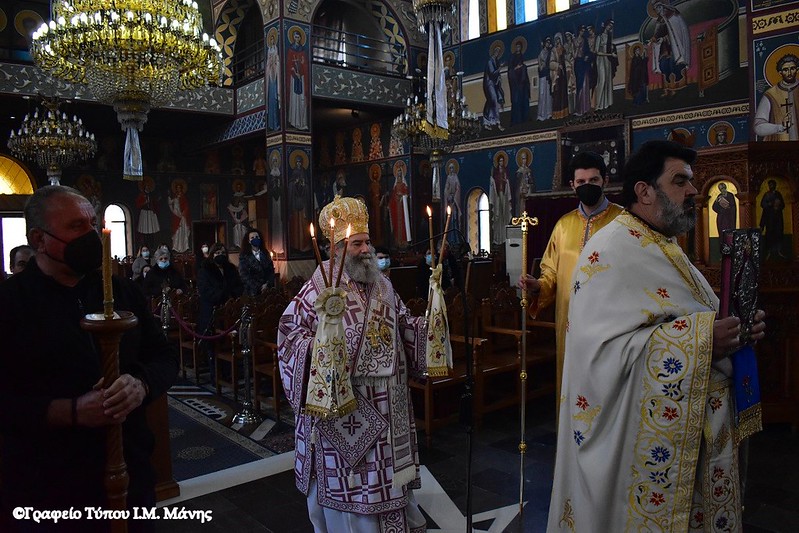 Σε ανταπόδοση της ευγενούς και φιλανθρώπου αυτής πράξης του ευλαβούς παπα – Στράτου, ο σεβασμιώτατος Μητροπολίτης Μάνης κ. Χρυσόστομος Γ΄, κατόπιν κανονικής αδείας κι ευλογίας του επιχωρίου σεβασμιωτάτου Μητροπολίτη Μονεμβασίας και Σπάρτης κ. Ευσταθίου, μετέβη την Κυριακή της Τυροφάγου 6/3 στον Ιερό Ναό Αγίας Τριάδος Σκάλας και τέλεσε τη Θεία Λειτουργία, κηρύσσοντας τον Θείο Λόγο.