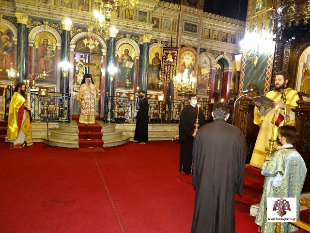Ακολούθησε, εντός του Ιερού Ναού, κατά την εκκλησιαστική τάξη, η λιτάνευση των ιερών εικόνων σε ανάμνηση της αναστηλώσεώς τους το έτος 843, ενώ ο σεβασμιώτατος ανέγνωσε το Συνοδικό της Ορθοδοξίας.