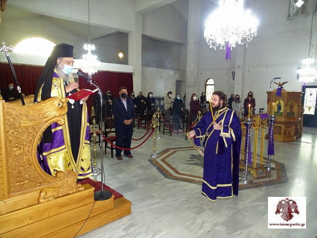 Νωρίτερα, ο Ιεράρχης τέλεσε το Μυστήριο του Ιερού Ευχελαίου στον Ιερό Ναό Αγίου Νικολάου, Αγίων Κωνσταντίνου και Ελένης και Αγίου Φανουρίου στον οικισμό Κατσαρού στις Αμύκλες.