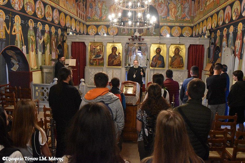Στο κήρυγμά του ο Μητροπολίτης Μάνης, αφού καλωσόρισε τους μαθητές, συνέχισε το θέμα των εμφανίσεων του Αναστάντος Χριστού.
