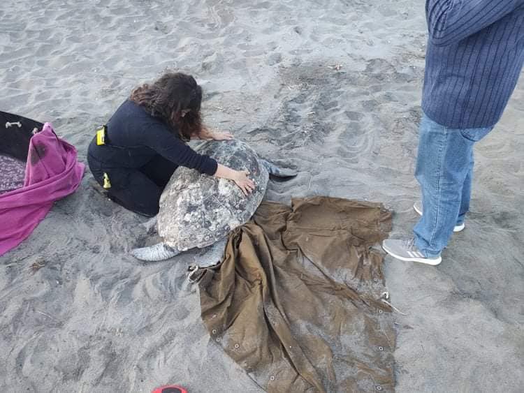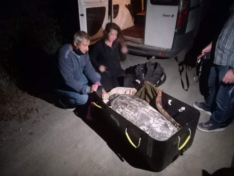 Οι κκ Μαρία Αρώνη και Γιάννης Ψαρράκης από τον Σύλλογο «Τουλίπα Γουλιμή», αλλά και δύο λιμενικοί, βοήθησαν να στην περισυλλογή της χελώνας και τη μεταφορά της σε ασφαλές σημείο για την περίθαλψή της.