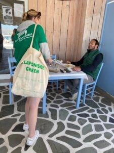 «Πράγματι, ο στόχος ήταν να σκεφτούμε με μια οικολογική λογική σε αυτό το υπέροχο νησί. Συλλέξαμε τα απόβλητα όπου ήταν συνολικά περίπου σαράντα σακούλες σκουπιδιών (!) με διάφορα απόβλητα όπως πλαστικά μπουκάλια, πλαστικές σακούλες, αλλά και πολλά αποτσίγαρα, πλαστικά αντικείμενα κλπ», επεσήμανε η ομάδα φοιτητών και πρόσθεσε: «Σε αυτό το πλαίσιο, ενθαρρύναμε επίσης τους κατοίκους του νησιού να χρησιμοποιούν υφασμάτινες σακούλες αντί για τις πλαστικές σακούλες που διανέμονται από εμπόρους και εστιάτορες επί τόπου. Έτσι, έχουμε διανείμει ενημερωτικά έγγραφα σχετικά με τη χρήση αυτών των σακουλών και τον οικολογικό σκοπό αυτής της δράσης. Είναι δύσκολο να εισαχθούν νέοι τρόποι κατανάλωσης και γνωρίζουμε ότι αυτό συνεπάγεται σημαντικές αλλαγές», υπογράμμισαν.