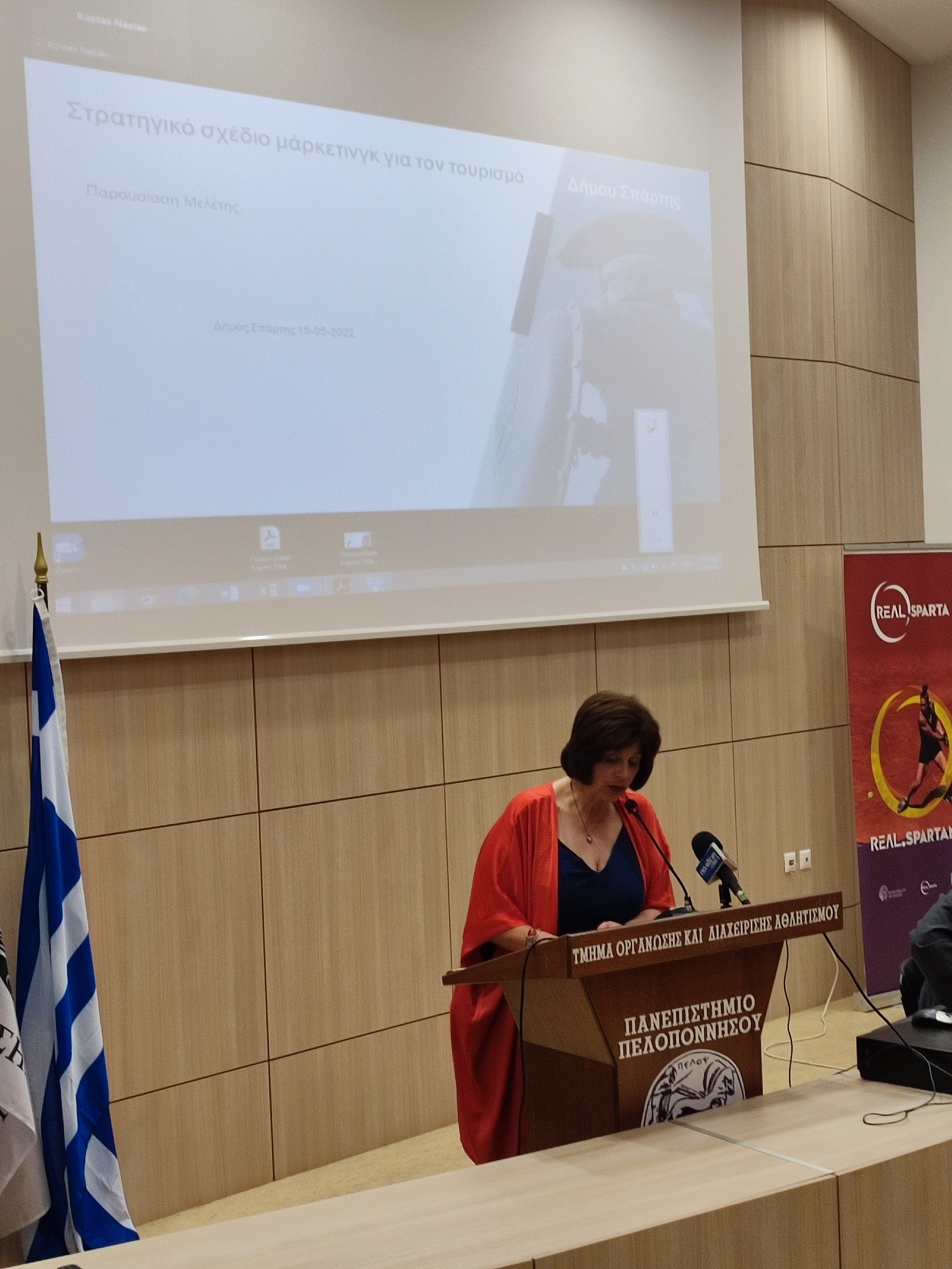 Στη συνέχεια έγινε παρουσίαση του Στρατηγικού Σχεδίου Μάρκετινγκ για τον Τουρισμό του Δήμου Σπάρτης από τον μελετητή Δρ. Σωτήρη Βαρελά, επίκουρο καθηγητή του Τμήματος Τουριστικών Σπουδών του Πανεπιστημίου Πειραιώς.