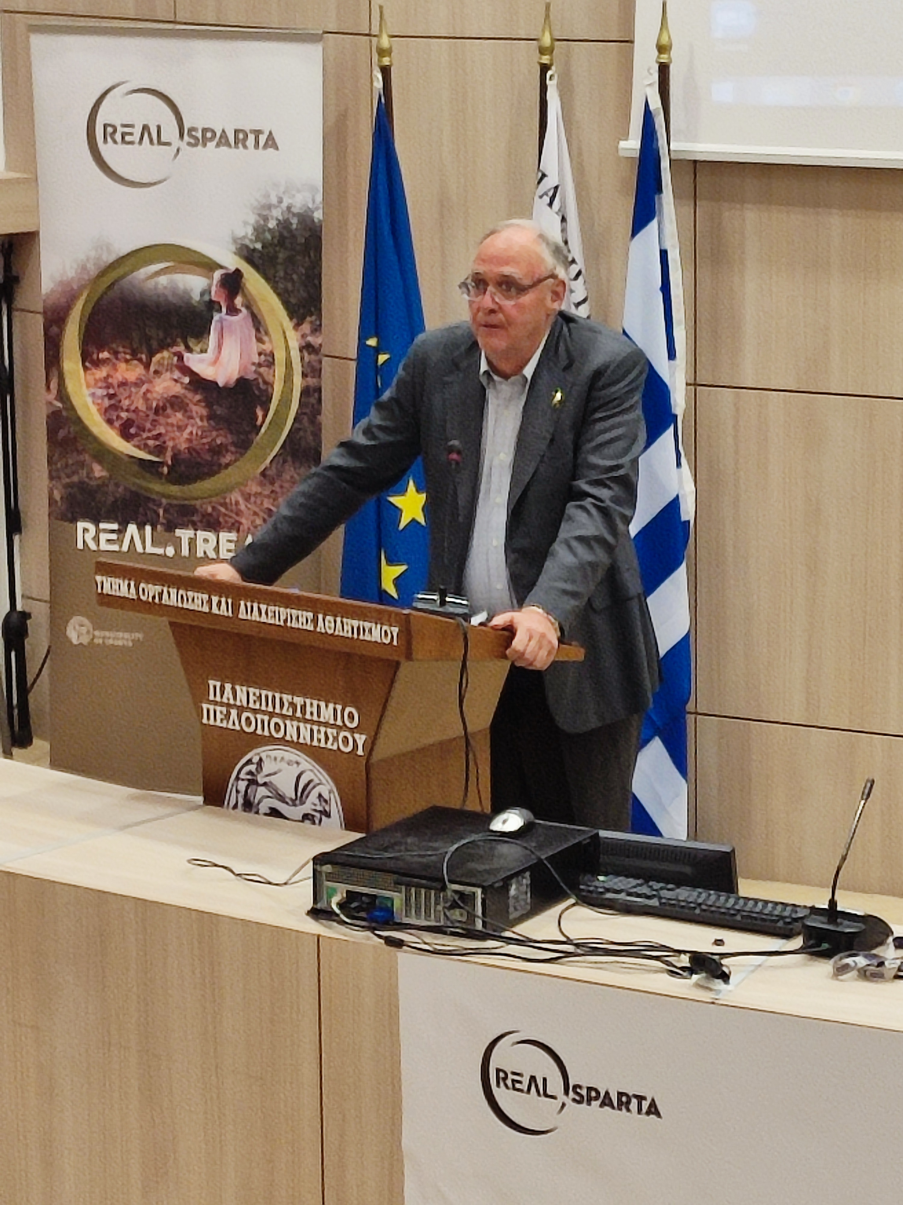 Ο Καθηγητής έκλεισε την ομιλία του με την παρουσίαση της νέας οπτικής ταυτότητας, του τουριστικού λογότυπου «Real Sparta» των sub brands «real paths», «realfood», «real Spartans» και του νέου σλόγκαν «Here simplicity is power» του Δήμου τα οποία βασίστηκαν στα ευρήματα της έρευνας. Ακολούθησε η προβολή των εφαρμογών της νέας οπτικής ταυτότητας σε ηλεκτρονικά και έντυπα μέσα, social media, υπαίθριες διαφημίσεις κ.α