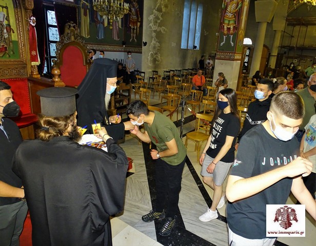 Με την ολοκλήρωση της παράκλησης, ο Μητροπολίτης Ευστάθιος πρόσφερε σε κάθε υποψήφιο -ως ευλογία- από ένα στυλό και μία εικόνα της Παναγίας.