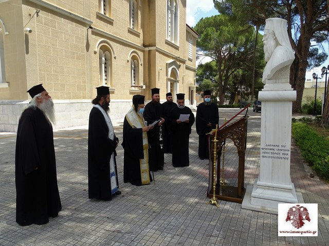 Παράλληλα, ο σεβασμιώτατος, συνοδευόμενος από τον πρωτοσύγκελλο της Ιεράς Μητρόπολης Μονεμβασίας και Σπάρτης, πανοσ. αρχ. Θεόφιλο Μαντζαβράκο και άλλους κληρικούς της τοπικής Εκκλησίας, τέλεσε –εμφανώς συγκινημένος– δέηση στην προτομή του Αγίου, έμπροσθεν της ιερής εικόνας του στον προαύλιο χώρο του Μητροπολιτικού Ναού Ευαγγελιστρίας Σπάρτης.
